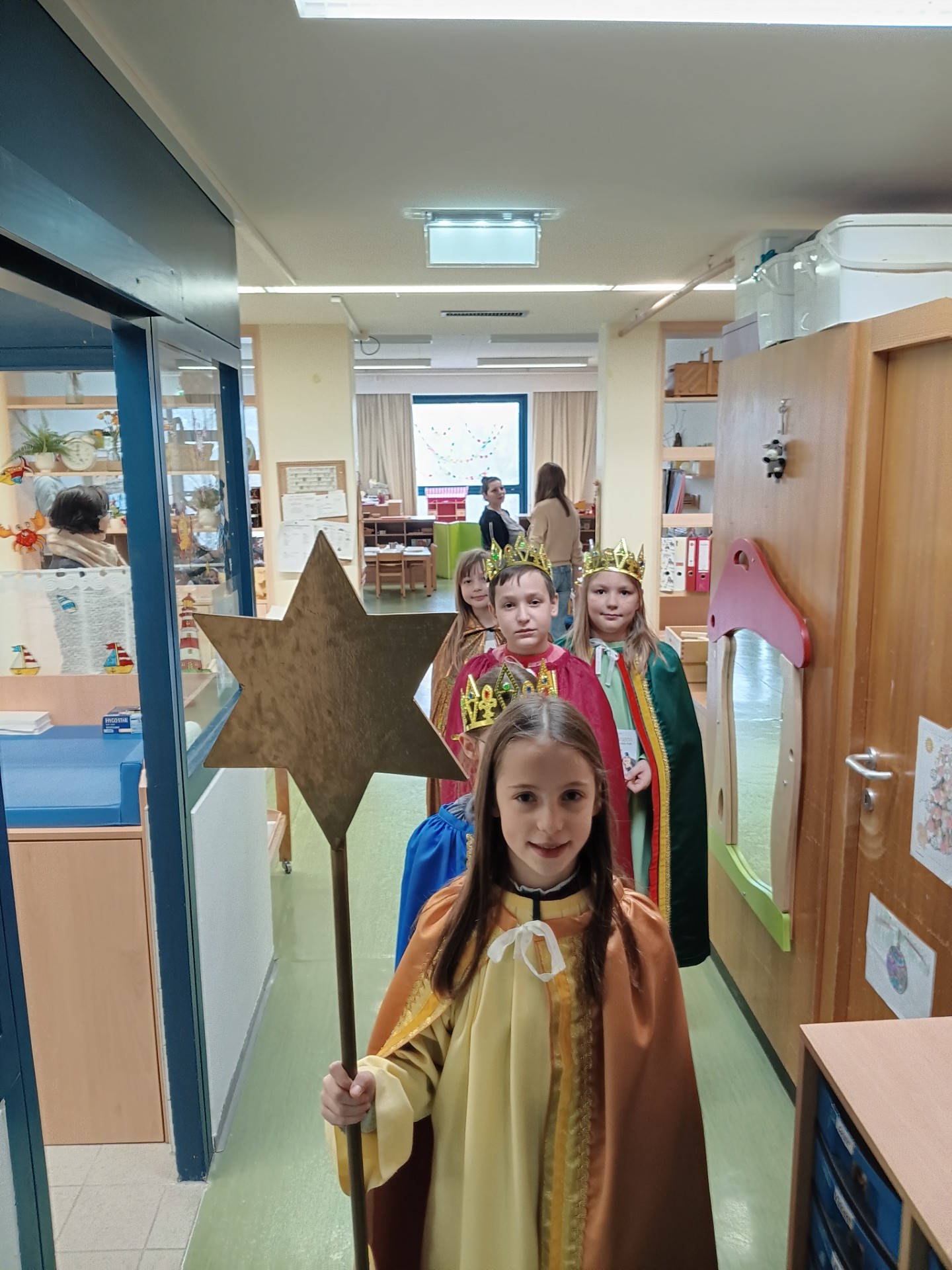 "Alle Jahre wieder" sind unsere Sternsinger am Campus unterwegs. Mit diesem Lied und Sprüchen brachten sie an drei aufeinanderfolgenden Tagen den Kindern des Kindergartens und den Schülern der Volksschule und des Gymnasium Segenswünsche in ihre Klassen. Die Spenden, die sie dafür erhalten haben, belaufen sich heuer auf 2329, 03€. Eine stolze Summe, die in vielen Ländern große Unterstützung bringen wird.