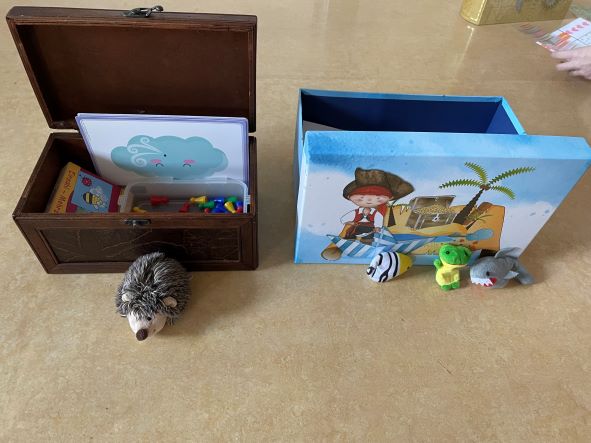 Jede SchülerIn hat eine individuelle Schatzkiste mit Impulsaktivitäten zur Stärkung der sprachlichen Kompetenz gestaltet. In der Schatzkiste befindet sich eine ausgewählte Aktivitätensammlung. Dieses großartige Material wird in der Kindergartenpraxis aktiv zum Einsatz kommen. Die SchülerInnen haben sich sehr viel Mühe gegeben!