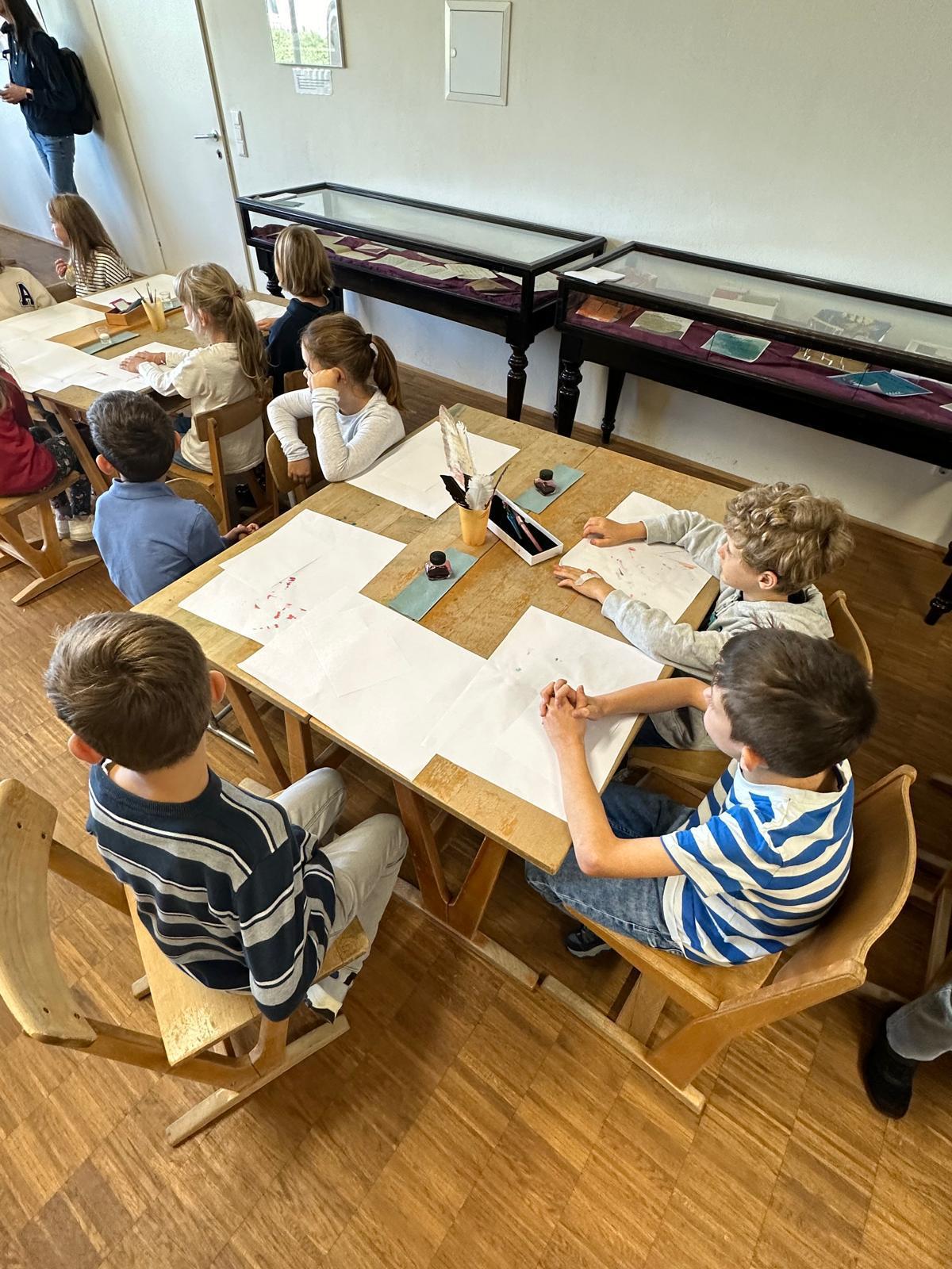 Ein Lehrausgang führte die drei Klassen ins Schulmuseum nach Michelstetten. Dort durften die Kinder neben unterschiedlichen Schriften auch verschiedene Schreibgräte ausprobieren. Außerdem erlebten sie in "waschechten" Klassenräumen Unterricht, wie er früher war - natürlich ohne Strafen und mit viel Humor.