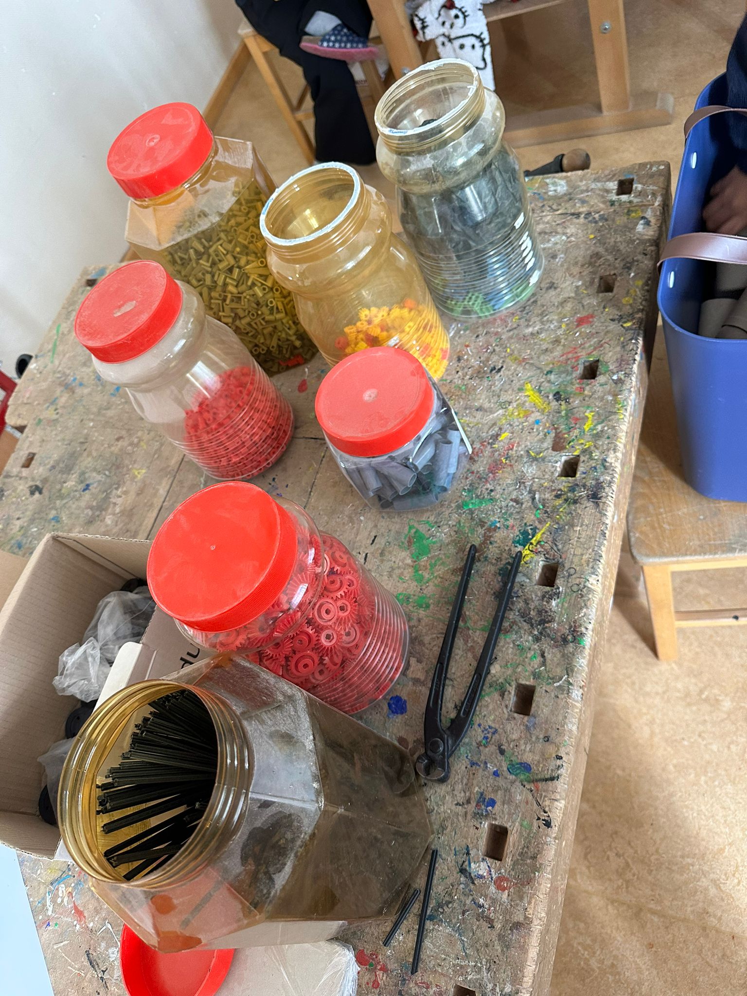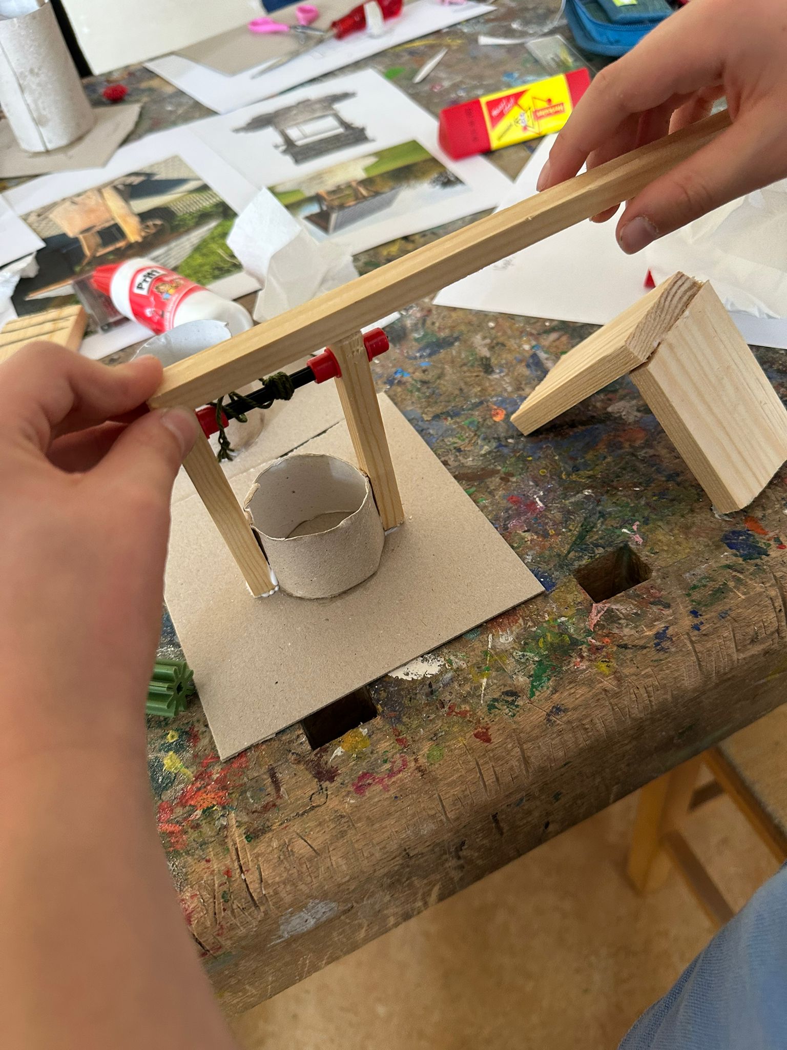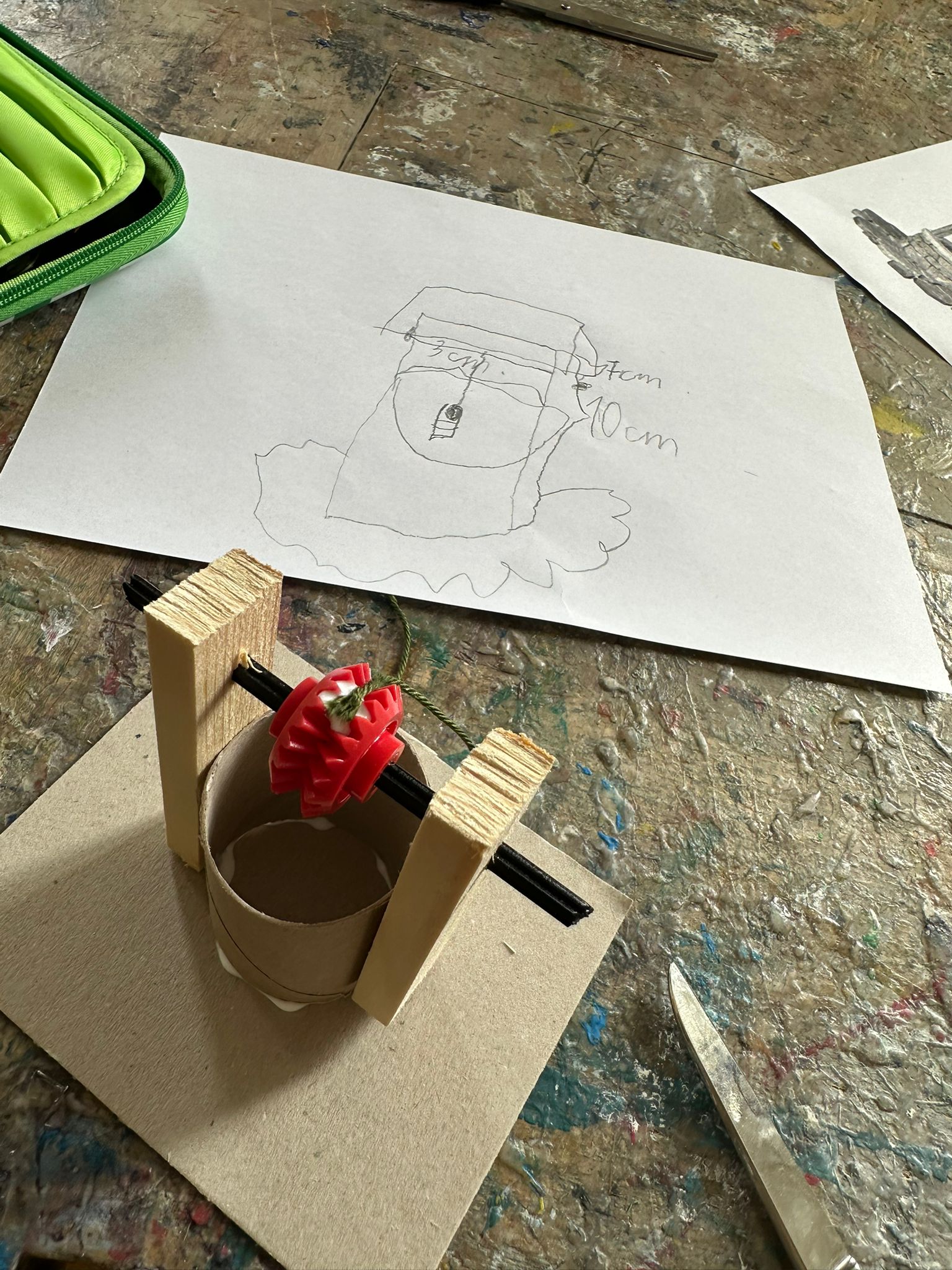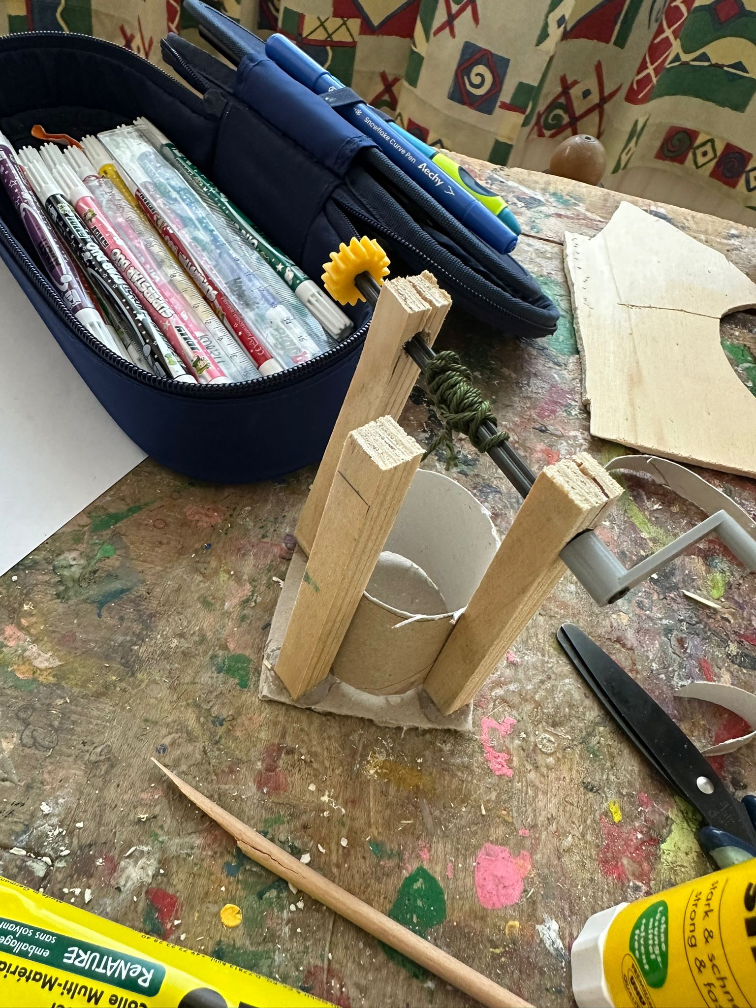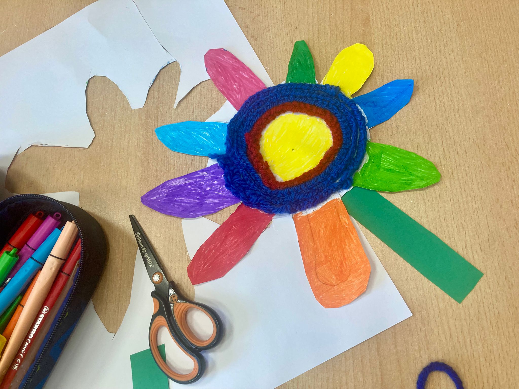 Da haben wir in technischen Werken Labyrinthe in einem Schuhkarton (3B), erfinderisch toll entworfene Ziehbrunnen (4A), nachdem die SchülerInnen überhaupt erst einmal erfahren mussten, was ein Ziehbrunnen überhaupt ist! In textilem Werken lernten die Kinder der 4. Klassen das Rundweben kennen und produzierten entzückende Schildkröten, deren Panzer das Werkstück ist. Unsere 3C widmete sich im September dem Fingerhäkeln und gestaltete witzige Mäuschen und die 3A häkelte mit Häkelnadeln ihre ersten Luftmaschen - hier entstanden die bunten textilen Blumenbilder!