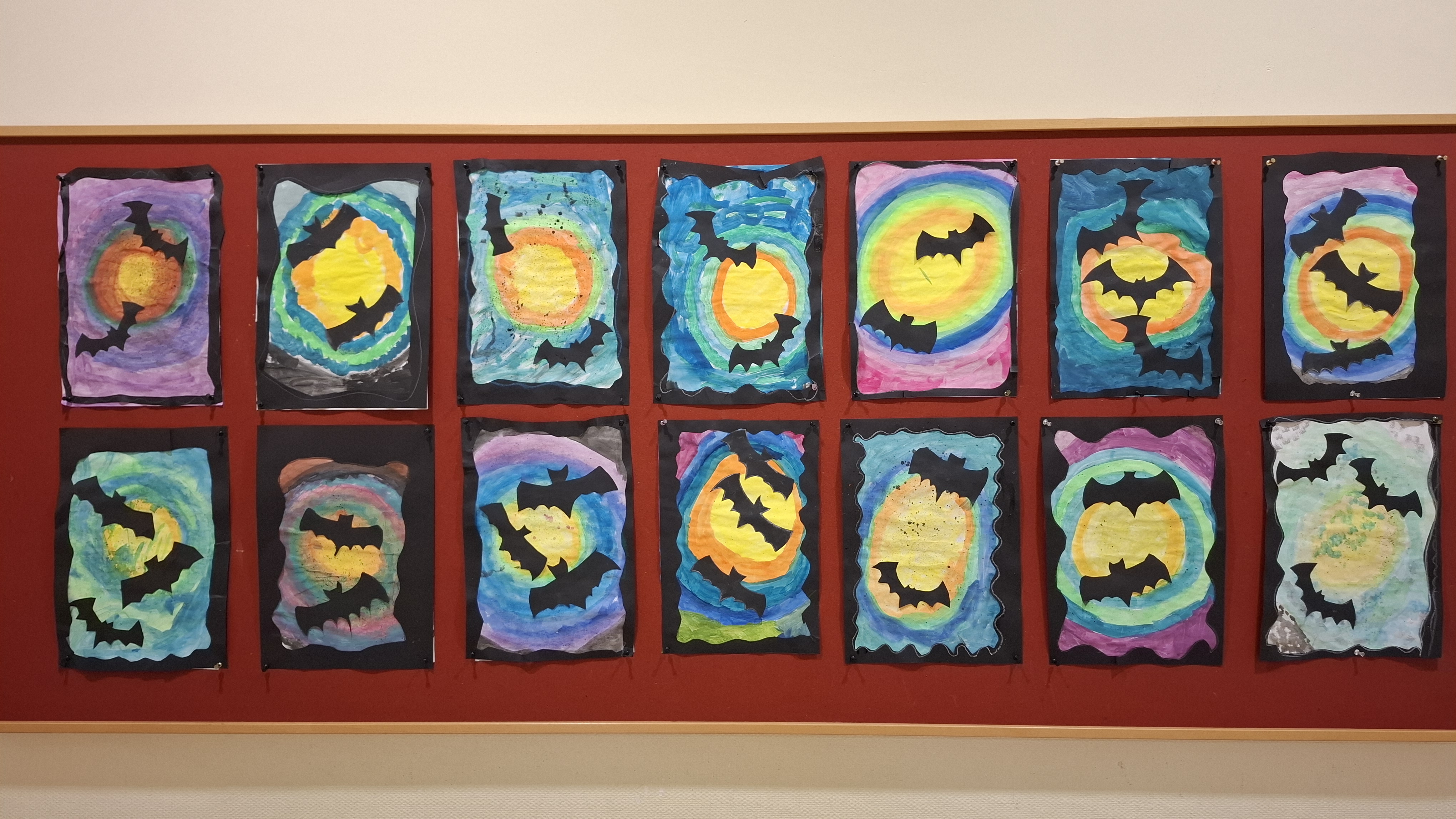 Da gibt es Eulen, Eichhörnchen und Fledermäuse, und auch die bunten Blätter der Herbstbäume dürfen nicht fehlen. So wird unser Schulhaus wunderschön herbstlich bunt!