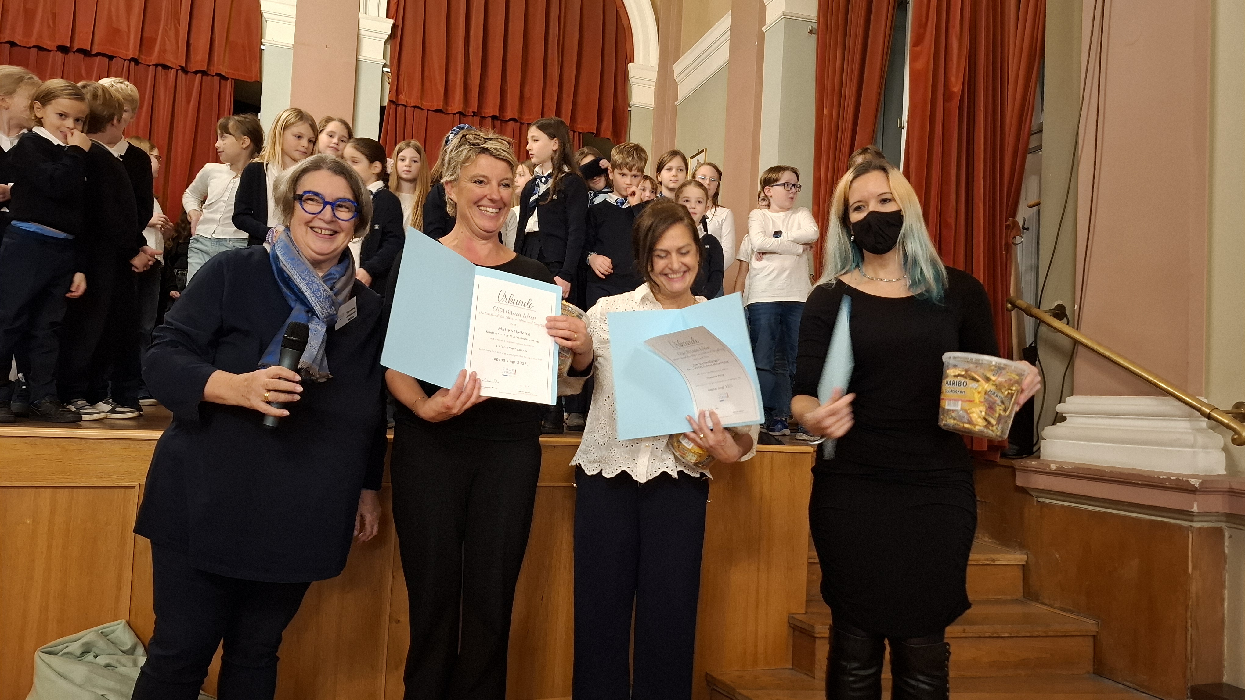 Am 3. Dezember nahmen unsere SängerInnen am Konzert "Jugend singt" im Festsaal des Gymnasiums Wasagasse teil. Unsere liebe (mittlerweile als Lehrerin pensionierte) Kollegin Veronika Linsbauer-Willer, ihres Zeichens nach Präsidentin des Chorforums Wien, überreichte uns eine Teilnehmerurkunde und freute sich besonders über unseren Auftritt, hatte sie doch den Chor ursprünglich gegründet! In der Kirche St. Michael (Heiligenstadt) durften wir die Sonntagsmesse am 3. Adventsonntag mitgestalten und auch den Adventmarkt feierlich eröffnen. Singen macht Freude und verbindet!