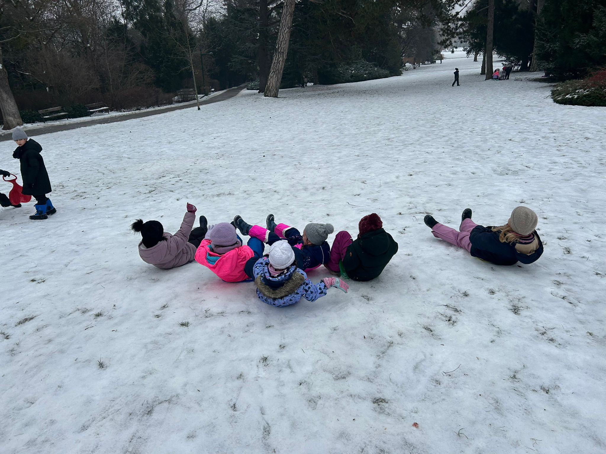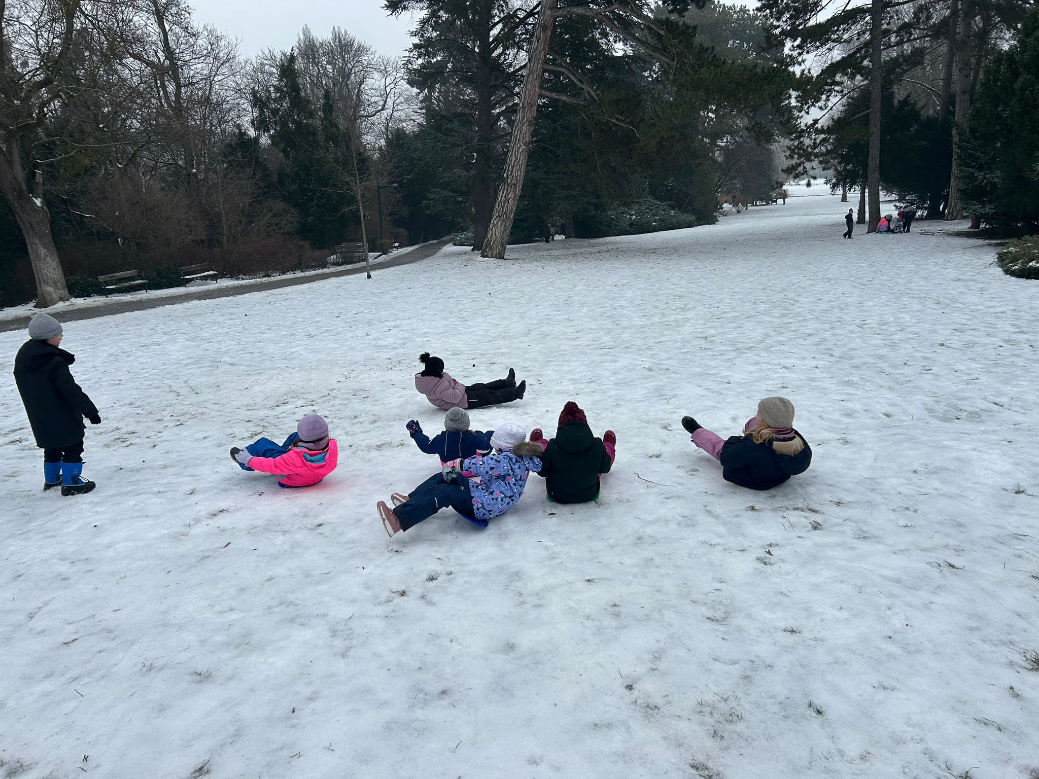 Die verschiedenen Aggregatzustände des Wassers in der Form von Schnee und Eis führte unsere 1A zu interessanten Beobachtungen. Sie klärten die Frage: Was schmilzt rascher: ein gepresster Schneeball oder flockig-lockerer Schnee? Außerdem ergab ein Experiment, dass aus einem Liter Schnee genau 0,5 Liter Wasser entstehen. Im Park wurde auch ein Schneemann gebaut - wenn auch etwas anders als erwartet, da der Schnee nicht ganz geeignet war ... Es waren wundervolle, kalte Tage im Jänner!