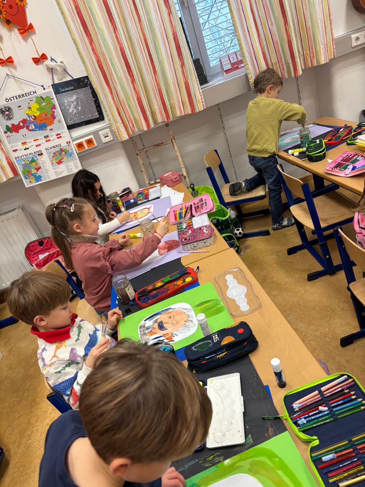 Kunst in der Vorschulklasse: Eine Zeit des sich ganz individuell Ausdrückens, sind diese Kunststunden! Die Ergebnisse sind daher so bunt und einzigartig wie jedes Kind in unserer Gruppe!