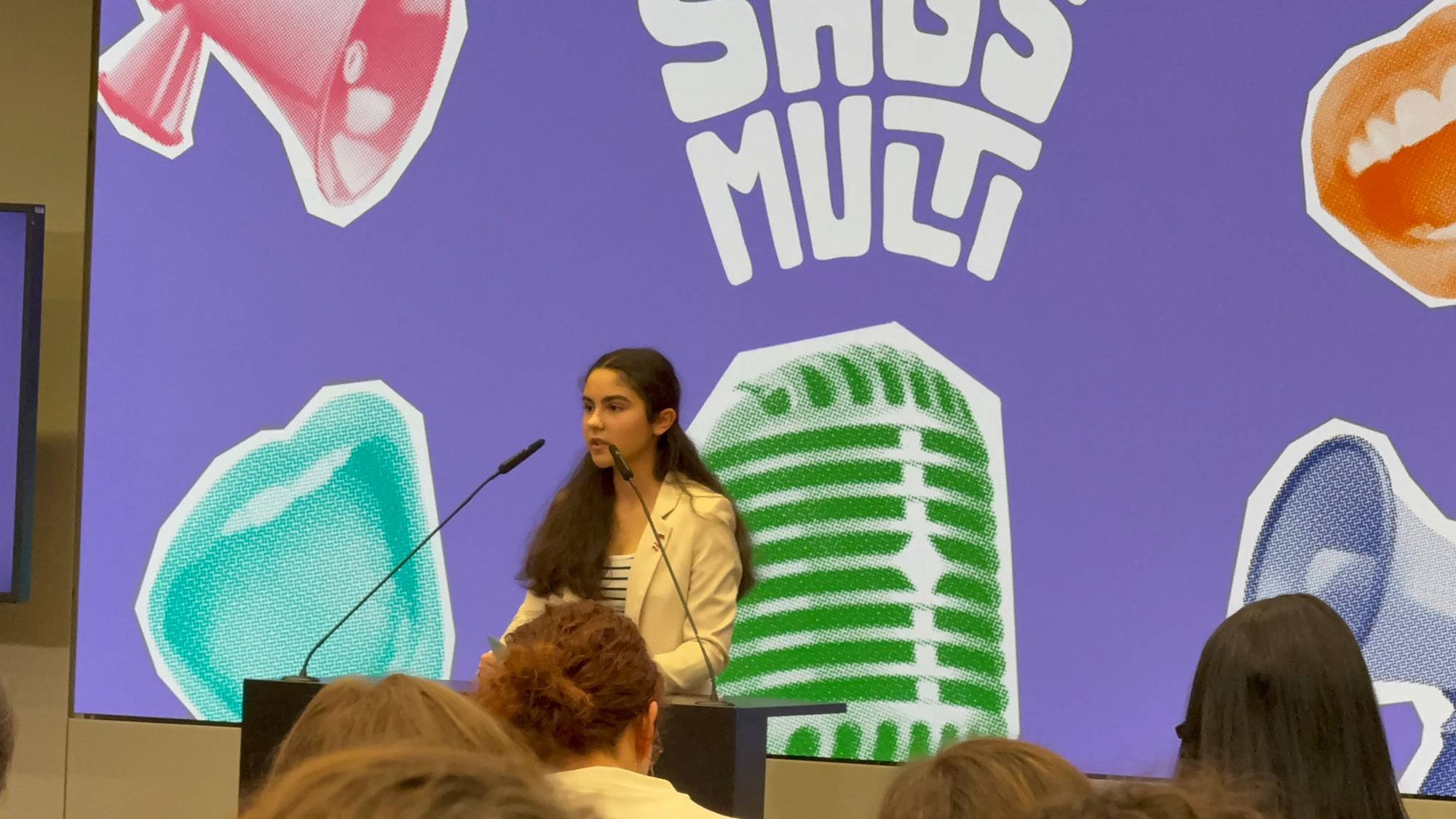 Vergangenen Dienstag, am 17. Februar 2026, haben Viktoria Bocheva (5A), Kaya Lehmann (7A) und Summer Han (7A) ihre rednerischen Fähigkeiten vor einem österreichweiten Publikum unter Beweis gestellt. Mit großem Engagement präsentierten sie ihre Gedanken zu den Themen „Gerechtigkeit“ und „Zusammenhalt in Vielfalt“ und wuchsen dabei über sich hinaus.