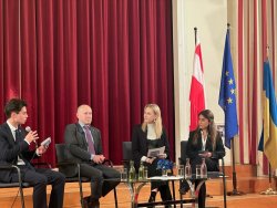 Am 24.10. durften wir den Ukrainischen Botschafter in Wien, Dr. Vasyl Khymynets zu einer Podiumsdiskussion in unserer Schule begrüßen.