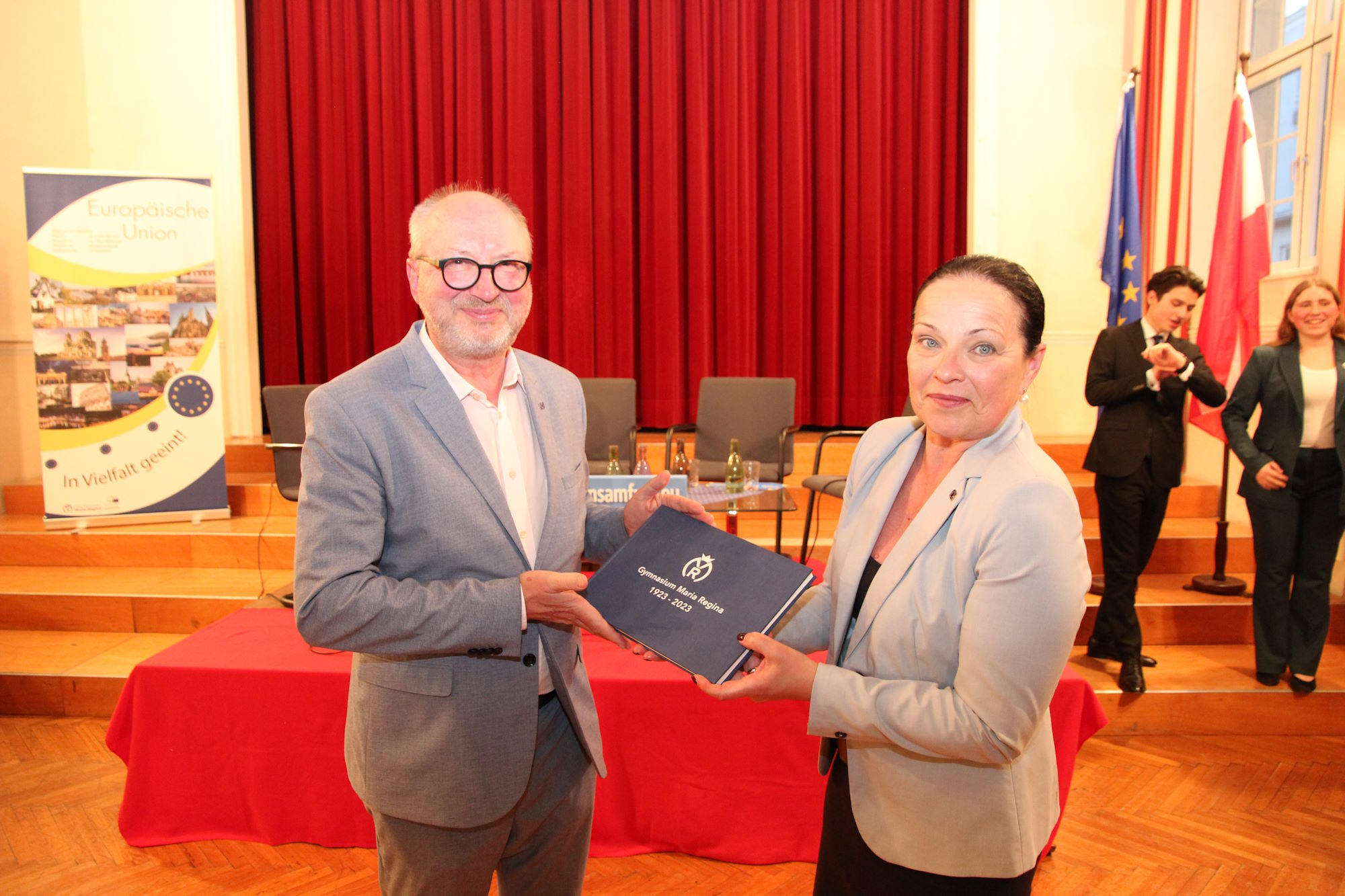 Podiumsgespräch mit Dr. Wolfgang Bogensberger, amtierender Vertreter der Europäischen Kommission in Österreich, organisiert vom CLUB_ERIC, dem Absolvent*innen-Netzwerk unseres MariaReginaInternational-Programms. Wichtige Argumente um jungen Menschen die EU-Wahl ans Herz zu legen werden ebenso angesprochen wie Klimawandel und Klimaneutralität sowie die EU-Skepsis in Österreich.