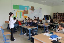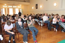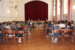In der 4.Stunde kamen die 2.Klassen in den Genuss einer Lesung durch LehrerInnen im Festsaal. Der Bogen reichte von Cornelia Funkes "Tintenherz" über Osterhasis, Nikolausis bis zur "Gangstaoma" mit ihrer Vorliebe für alle Kohlgerichte.
