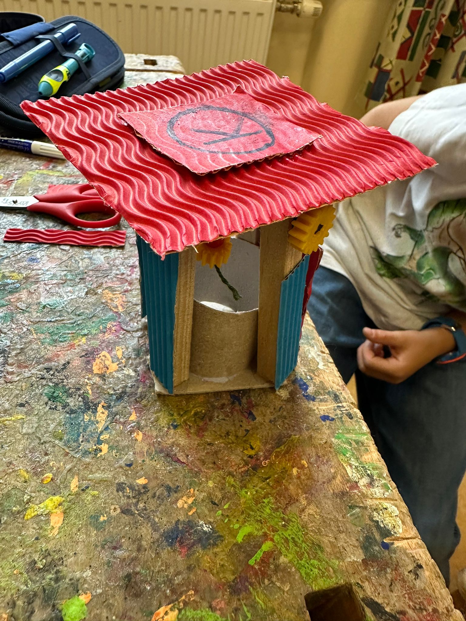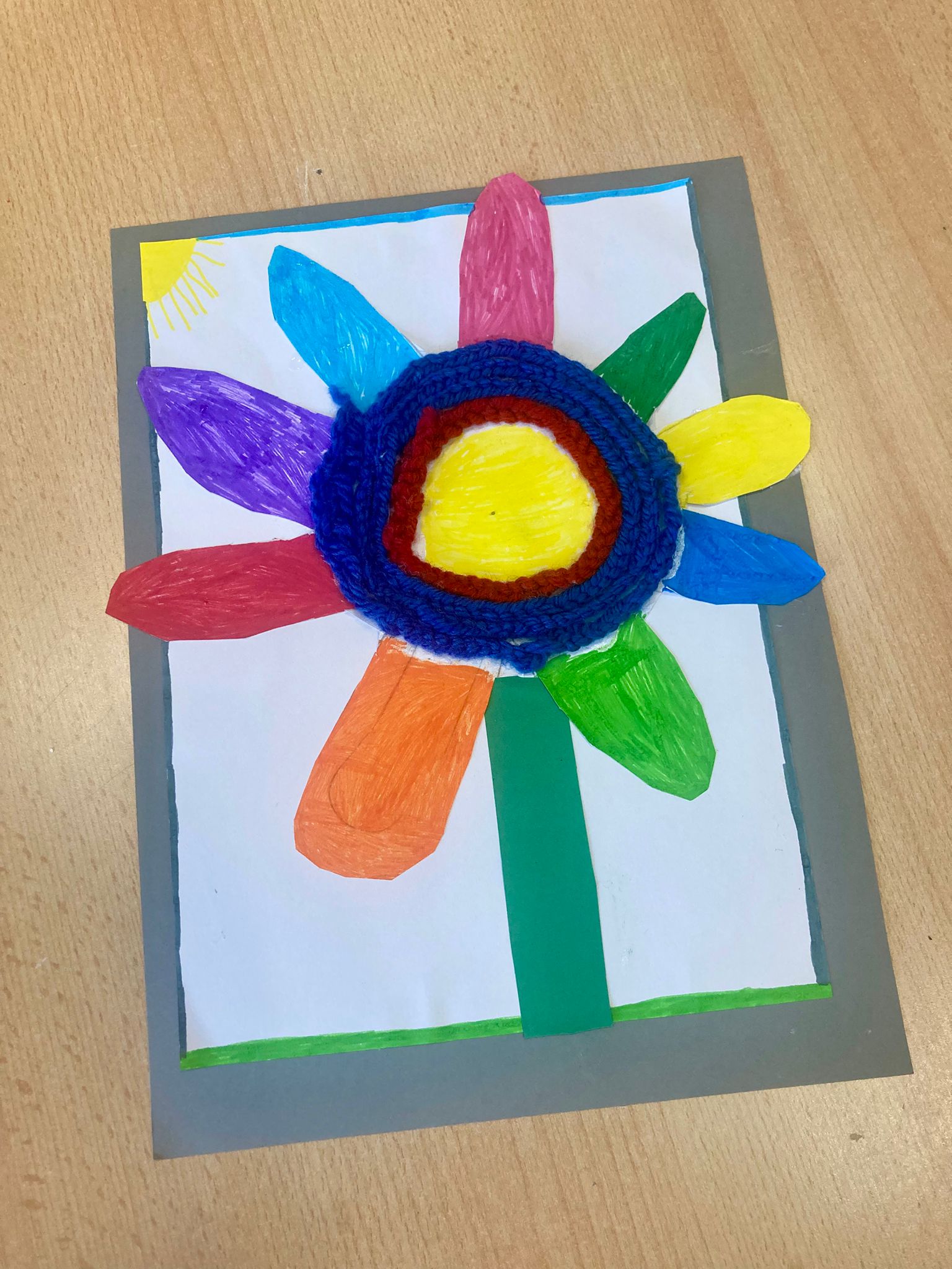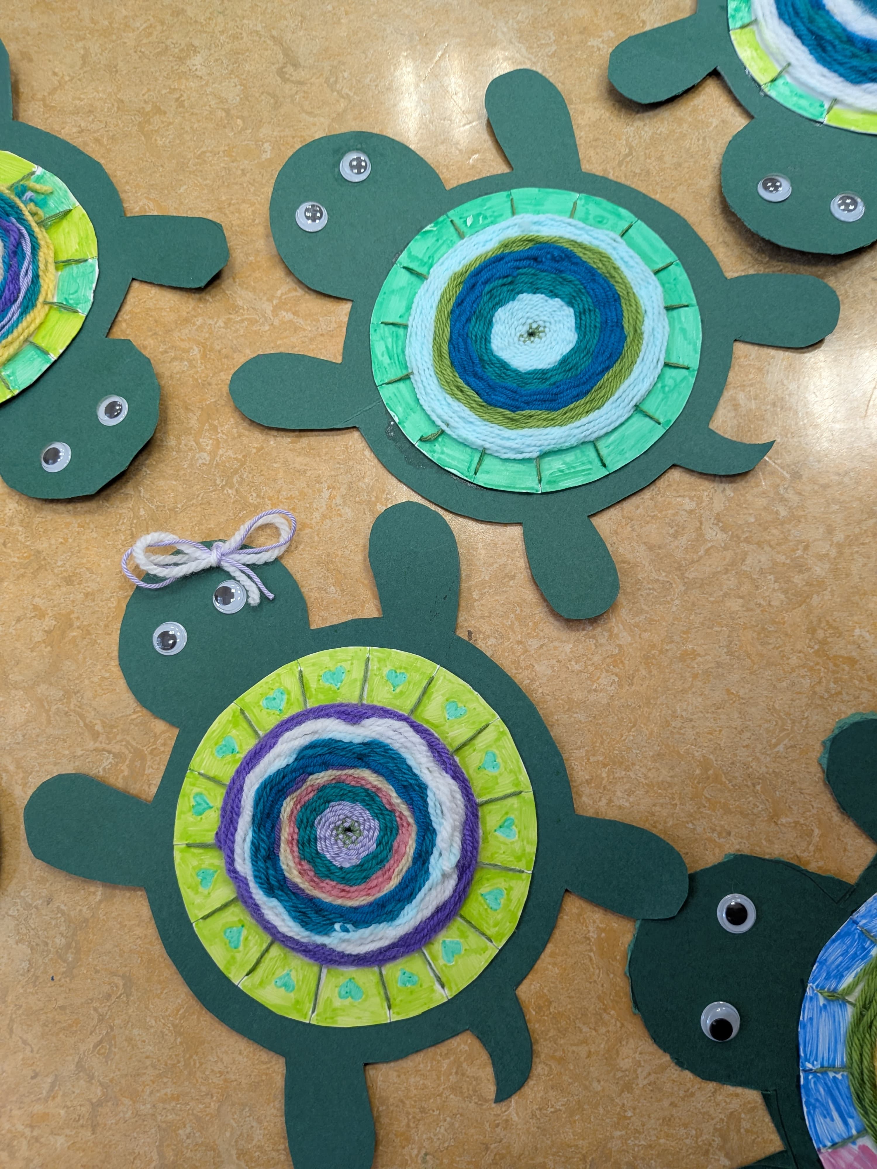 Da haben wir in technischen Werken Labyrinthe in einem Schuhkarton (3B), erfinderisch toll entworfene Ziehbrunnen (4A), nachdem die SchülerInnen überhaupt erst einmal erfahren mussten, was ein Ziehbrunnen überhaupt ist! In textilem Werken lernten die Kinder der 4. Klassen das Rundweben kennen und produzierten entzückende Schildkröten, deren Panzer das Werkstück ist. Unsere 3C widmete sich im September dem Fingerhäkeln und gestaltete witzige Mäuschen und die 3A häkelte mit Häkelnadeln ihre ersten Luftmaschen - hier entstanden die bunten textilen Blumenbilder!