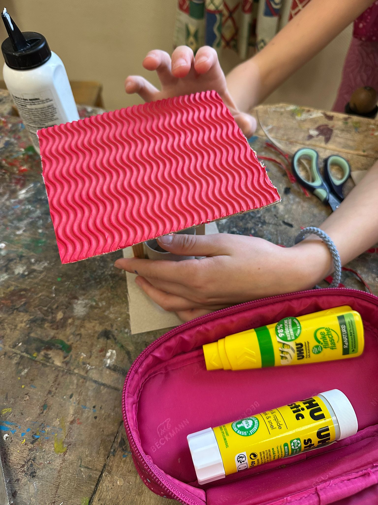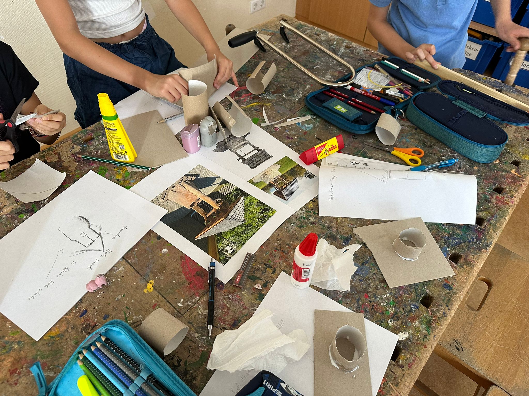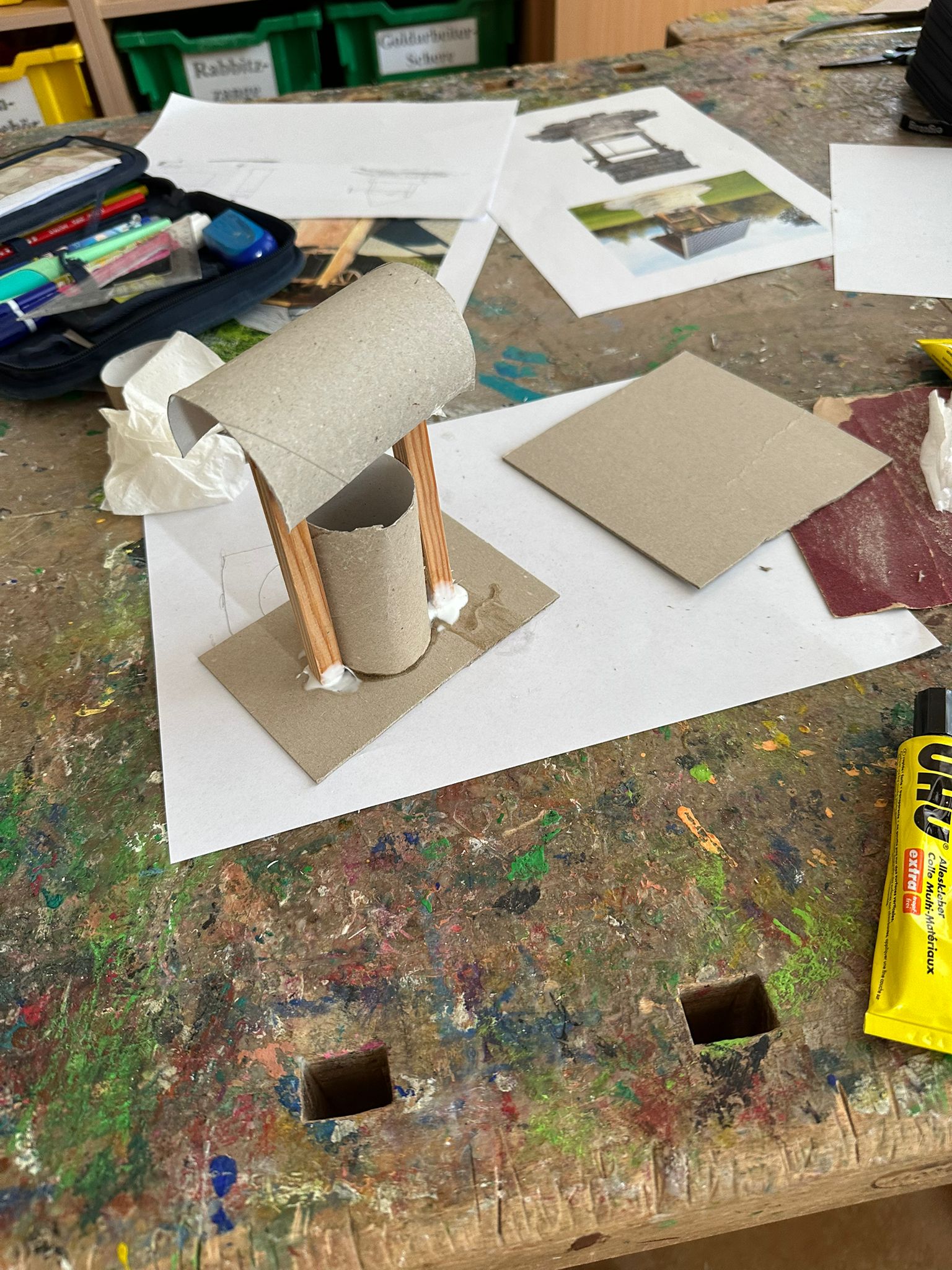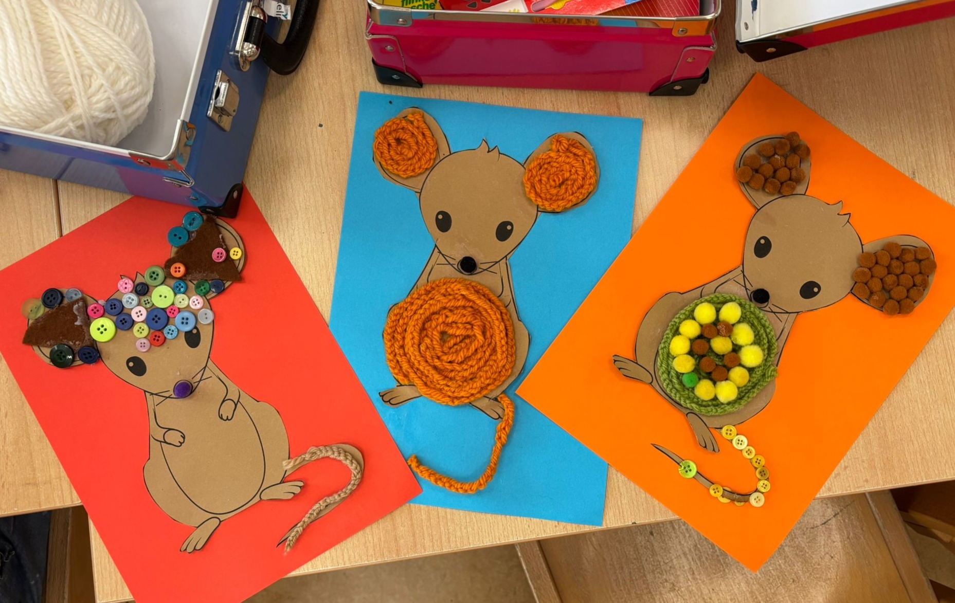 Da haben wir in technischen Werken Labyrinthe in einem Schuhkarton (3B), erfinderisch toll entworfene Ziehbrunnen (4A), nachdem die SchülerInnen überhaupt erst einmal erfahren mussten, was ein Ziehbrunnen überhaupt ist! In textilem Werken lernten die Kinder der 4. Klassen das Rundweben kennen und produzierten entzückende Schildkröten, deren Panzer das Werkstück ist. Unsere 3C widmete sich im September dem Fingerhäkeln und gestaltete witzige Mäuschen und die 3A häkelte mit Häkelnadeln ihre ersten Luftmaschen - hier entstanden die bunten textilen Blumenbilder!