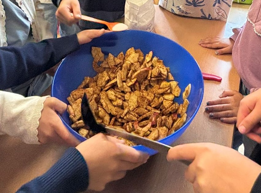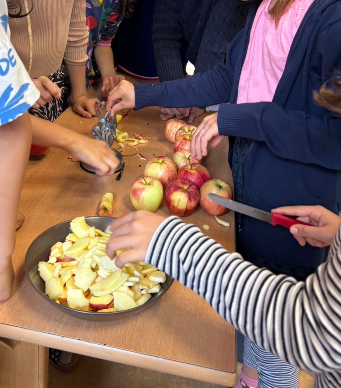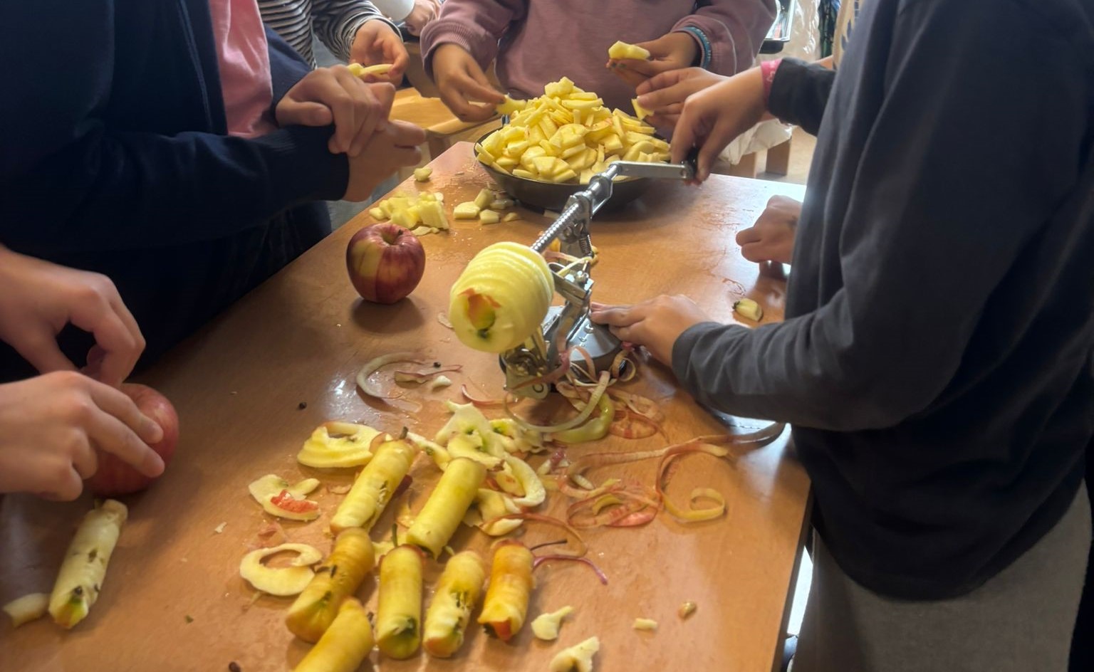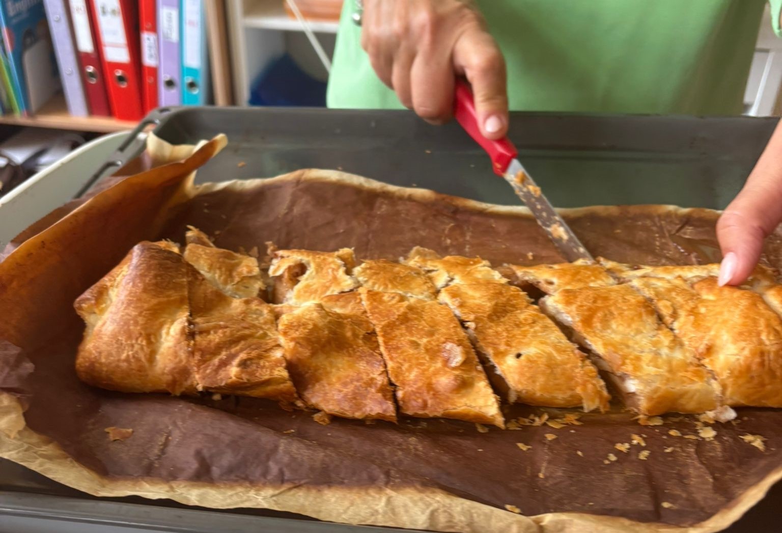 So entstand in intensiver Zusammenarbeit ein köstlicher Apfelstrudel in der 3C - in direktem Zusammenhang mit unserem Erntdedankfest!