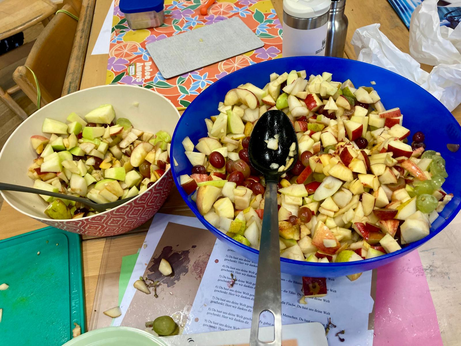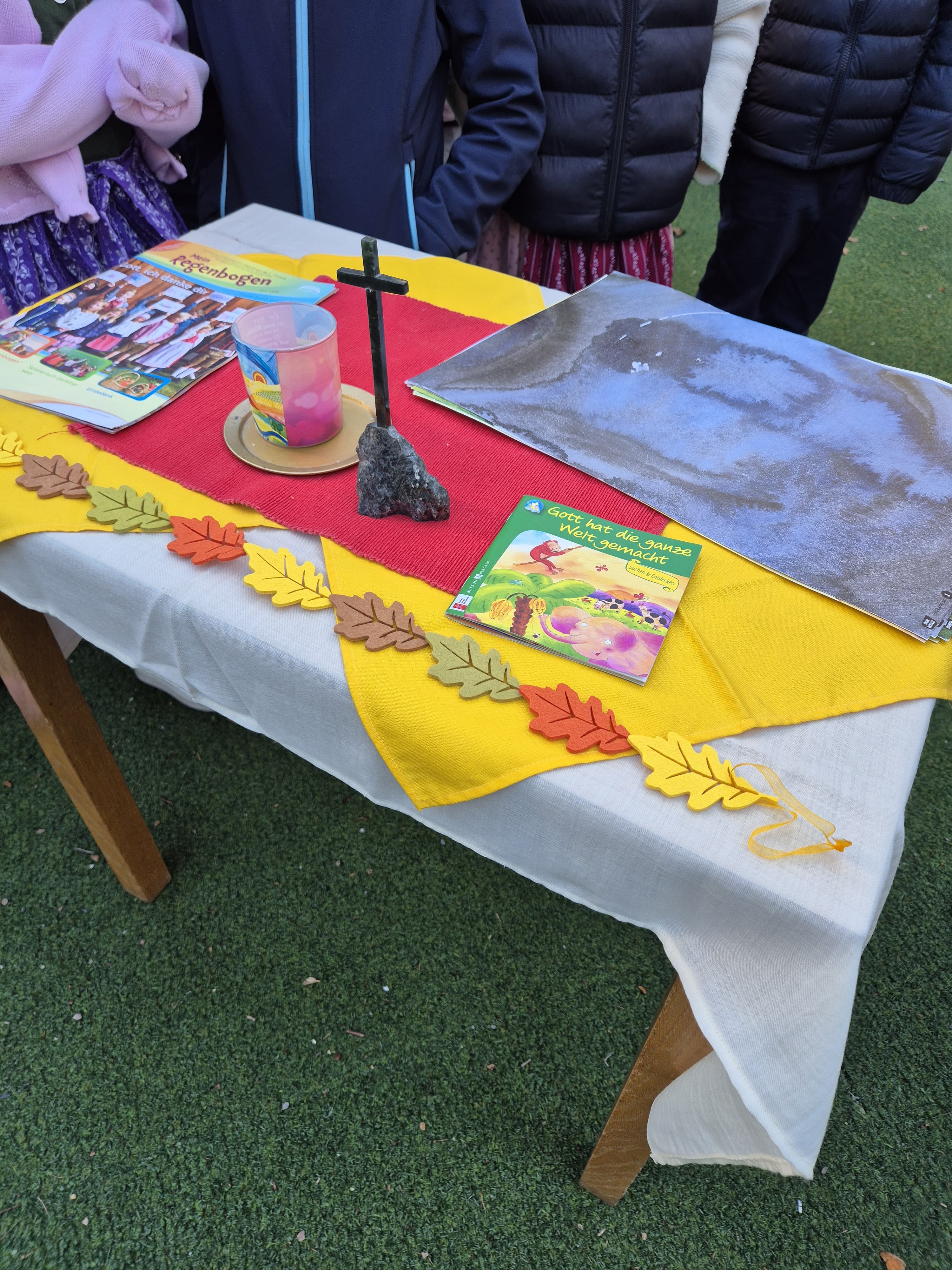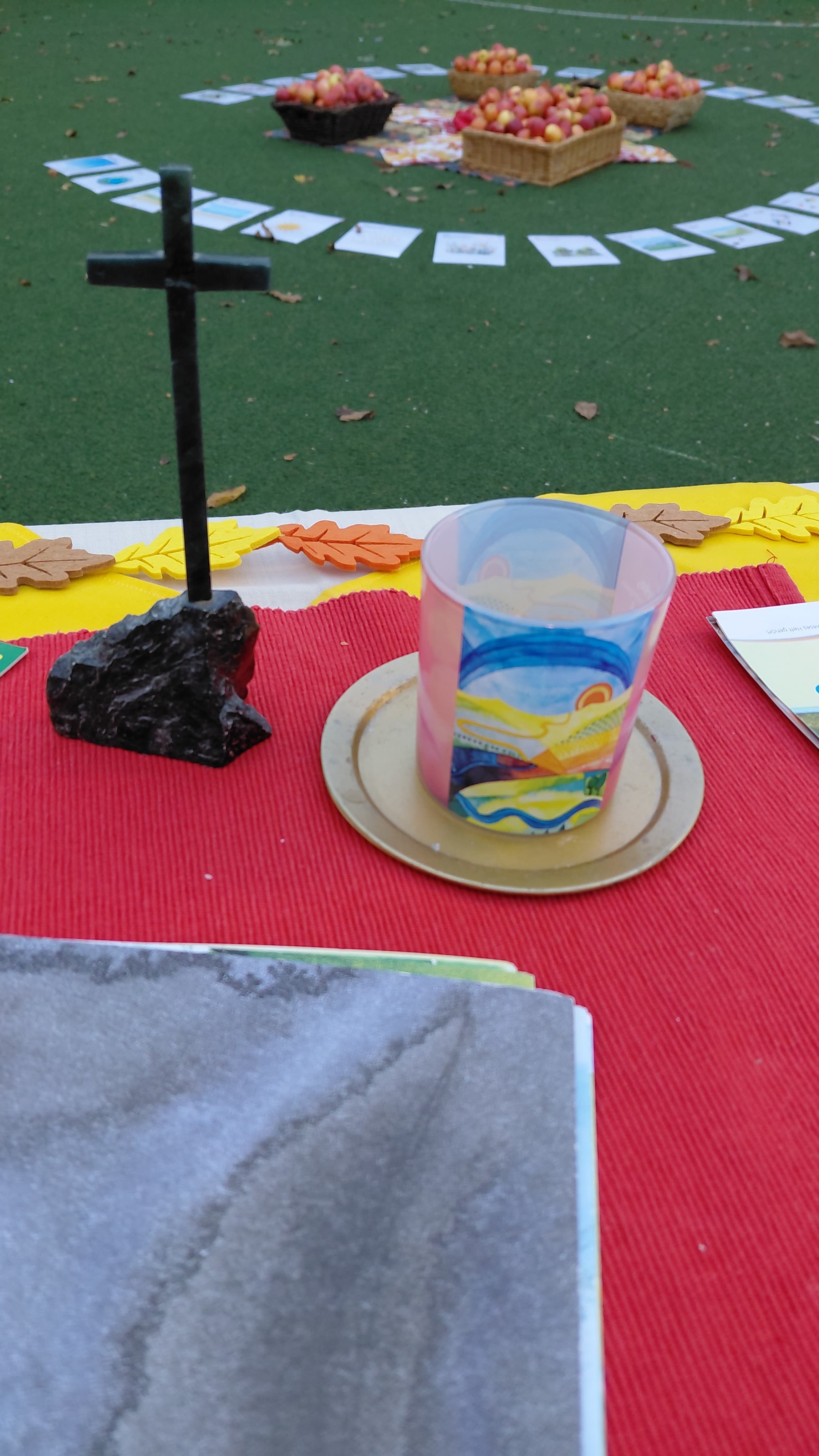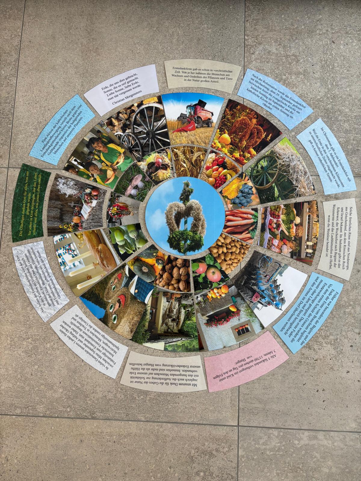 Es gab eine Eröffnung der Woche mit einem Morgenlob, wir legten Naturmandalas und beschäftigten uns im Sachunterricht mit den Früchten des Feldes, der Bäume und Sträucher. Danke sagen wir für alles, was wir haben, die Nahrung, die Familien und Freunde, die Schule und besonders auch für den Frieden, in dem wir leben dürfen. Zum Abschluss der Woche feierten wir einen ökumenischen Dankgottesdienst.