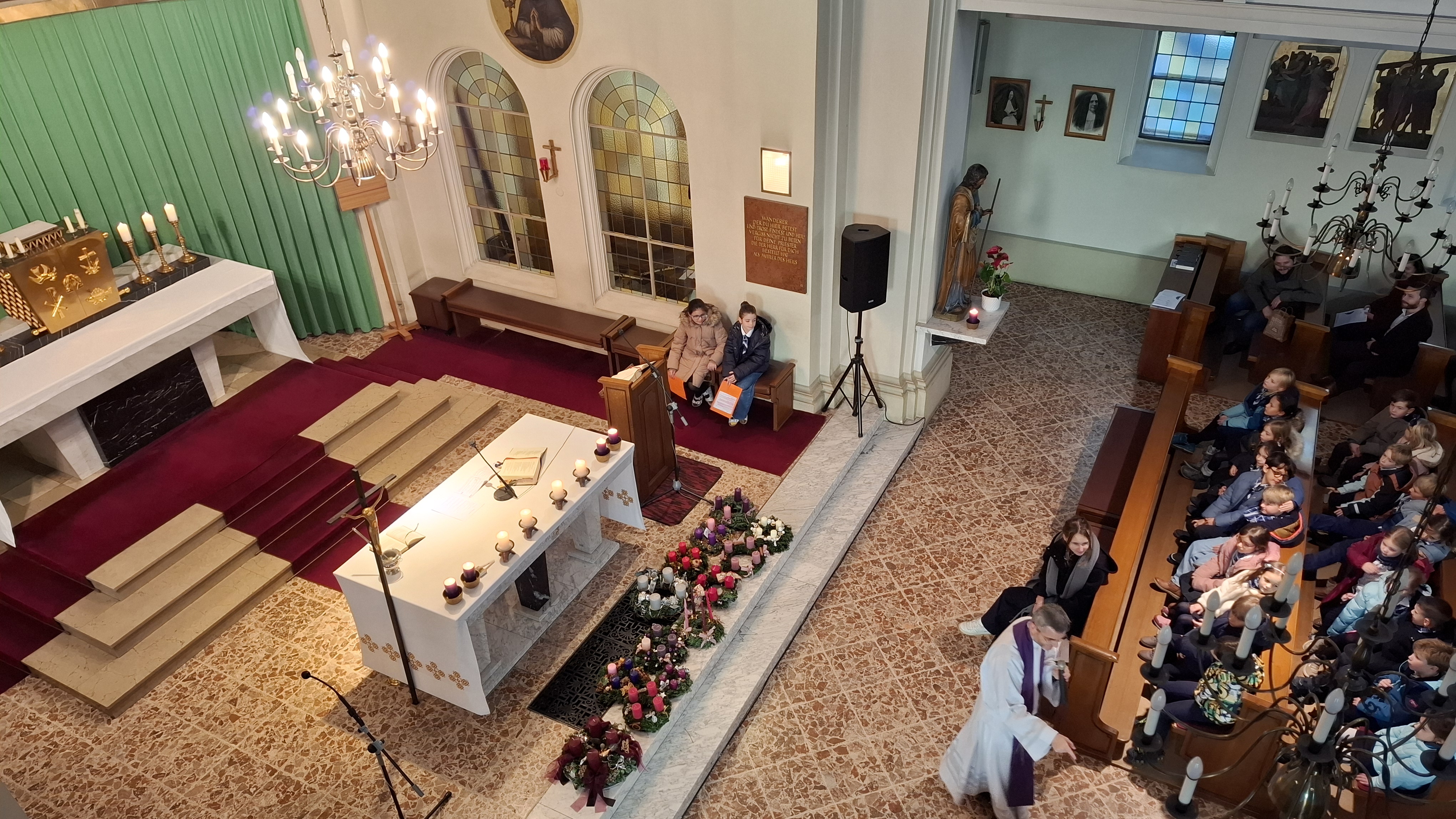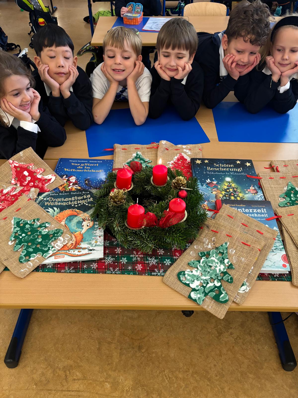 Traditionell wurden die Kränze in der Schule, BAfEP und Hort, gemeinsam gebunden und am Freitag vor dem ersten Adventsonntag in der Klosterkirche gesegnet. Texte über das Licht, den grünen Kranz und die Wartezeit auf die Geburt Jesu durften dabei natürlich nicht fehlen.