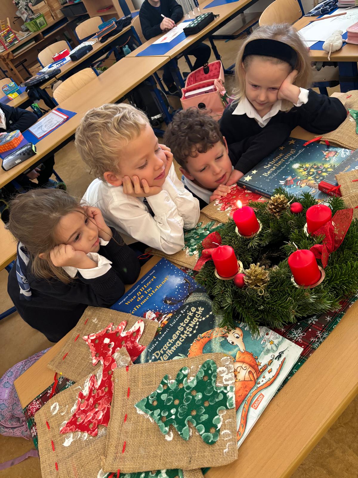 Am 28.11. wurden die Klassenadventkränze in der Schule gesegnet: