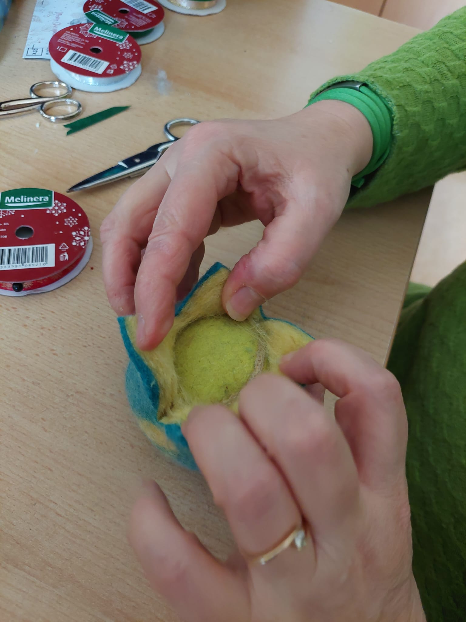 Mit viel Ausdauer, Liebe und anschließend gewaschenen Händen arbeiteten die Kinder während der Werkstunden. Das Werkstück wurde als Windlicht ganz individuell ausgestaltet (4C) Die Kinder der 4AB gestalteten Christbaumkugeln aus Filz. Dabei lernten alle Klassen erstmals das Nassfilzen kennen.. Die Ergebnisse können sich sehen lassen.
