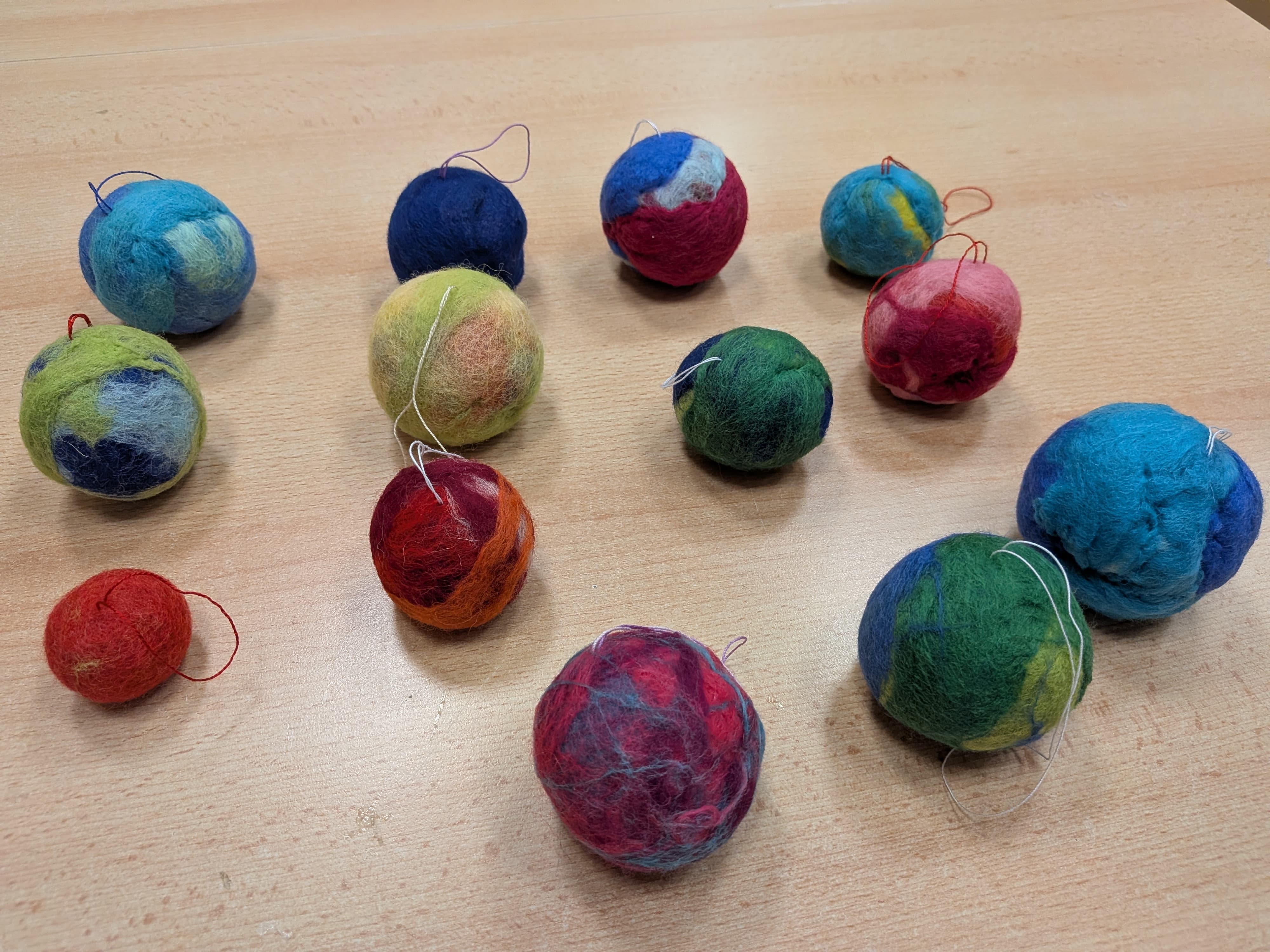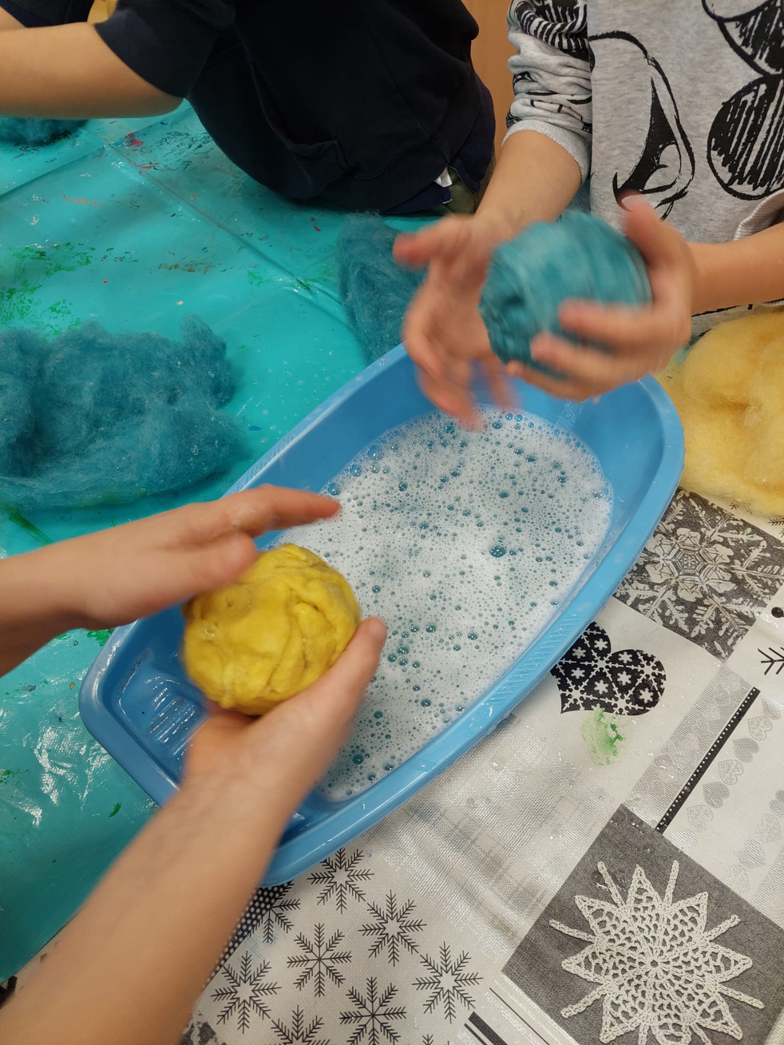 Im textilen Werkunterricht wurde in den 4. Klassen die Nassfilztechnik entdeckt - und gestickt und genäht!
