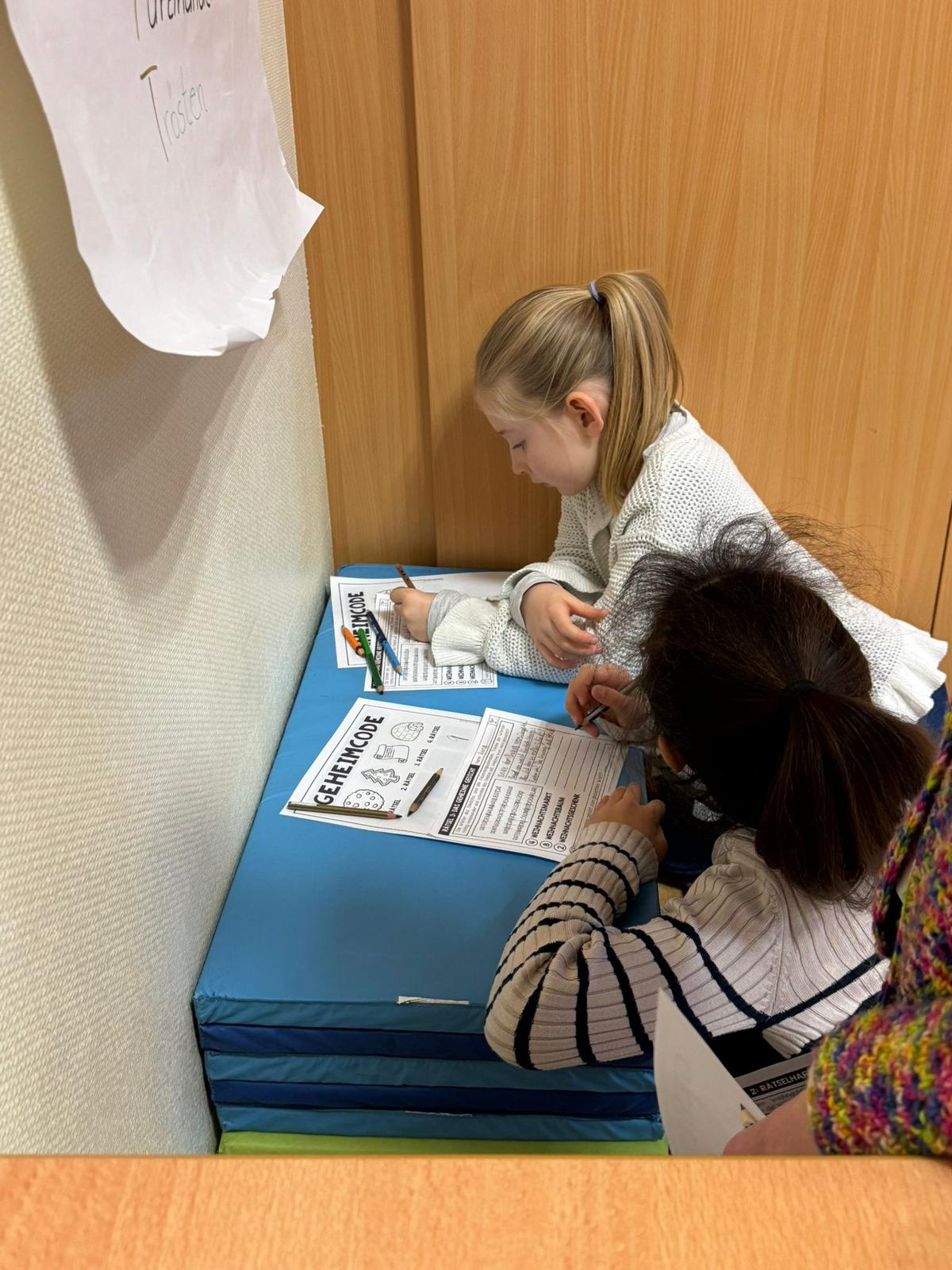 Der Geheimcode wurde geknackt und die Kinder der Klasse 3C konnten so den Weihnachtsmann aus dem Verlies retten! Es wurde in kleinen Gruppen miteinander gearbeitet. Es war so ein Spaß!!!