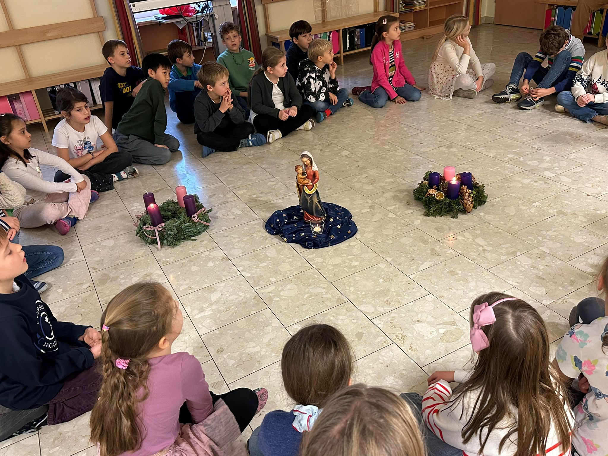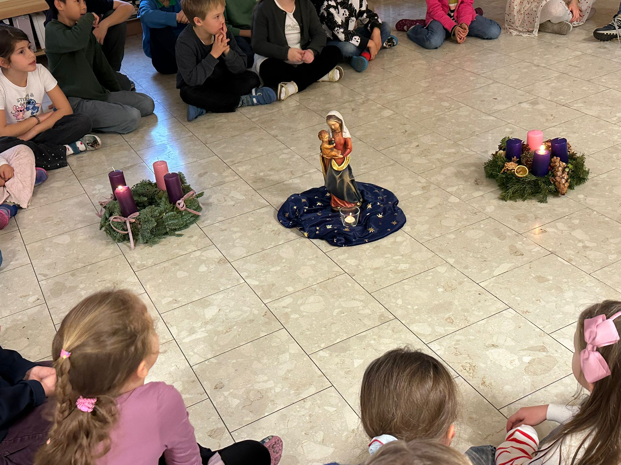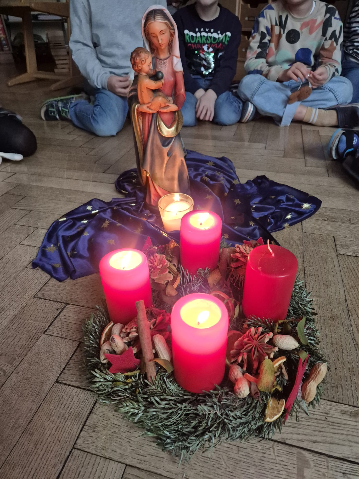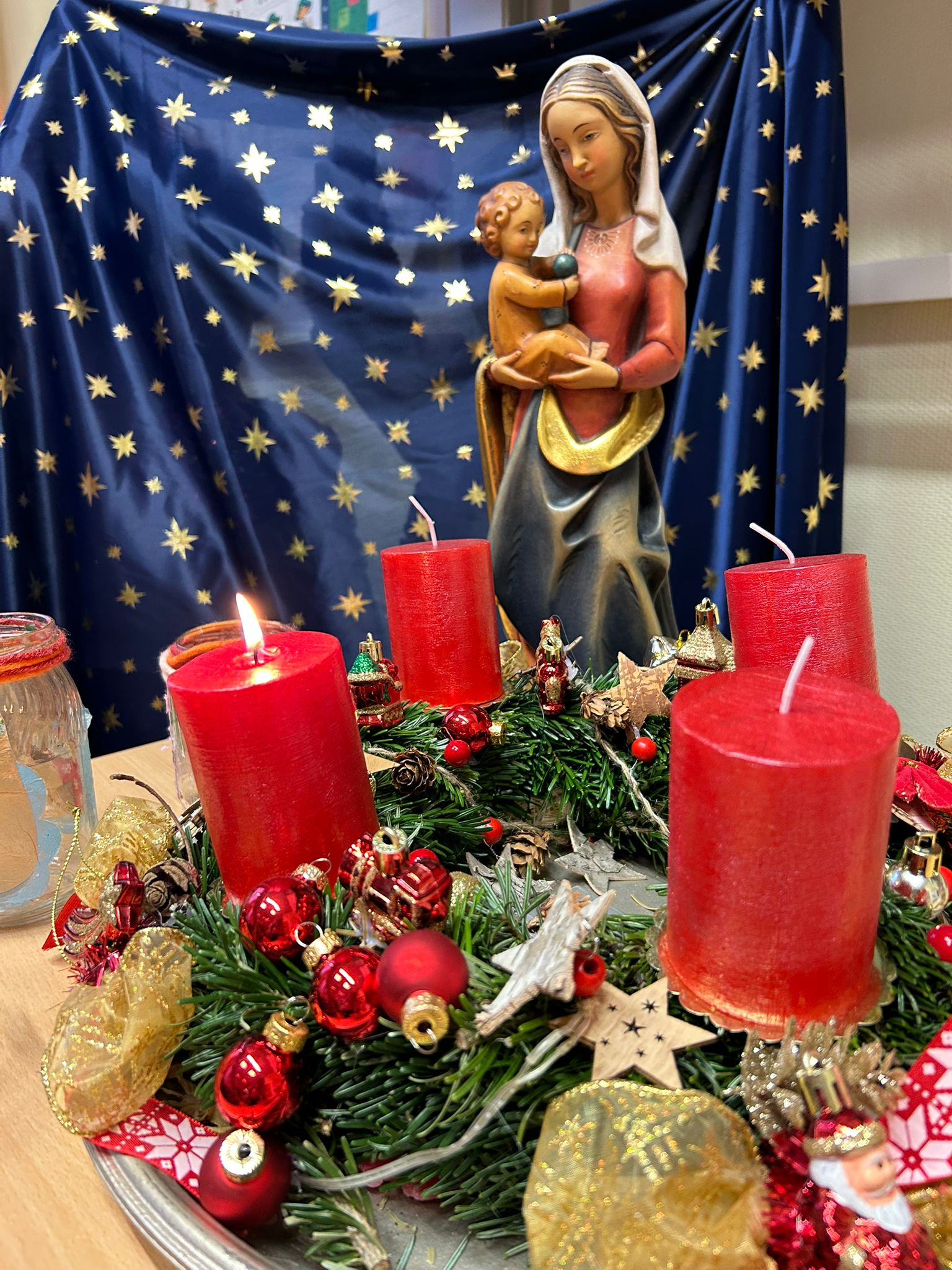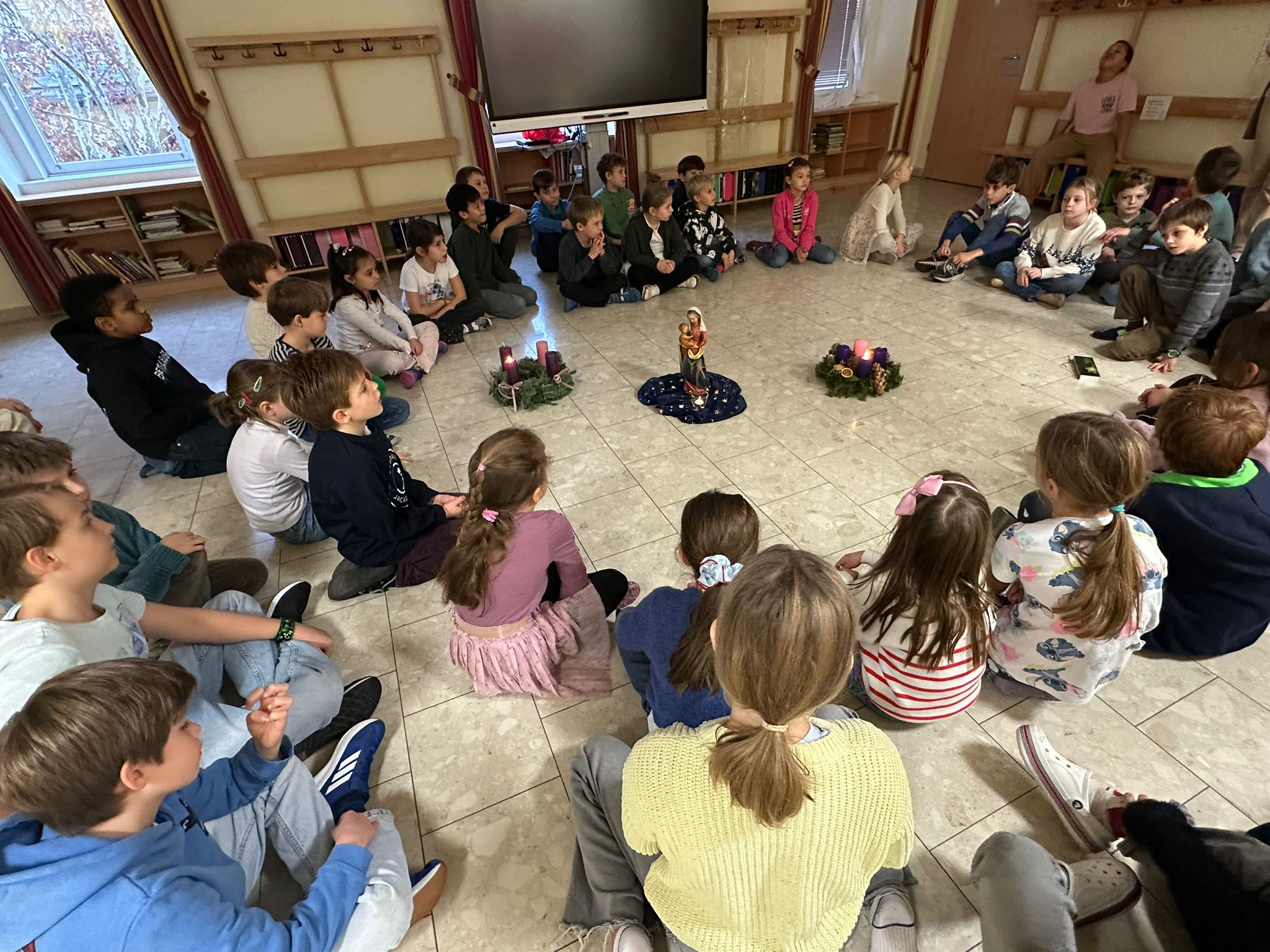 Einen Teil des Weges durch den Advent stellten auch heuer wieder die Roraten dar. Wenn es noch dunkel ist, nur im Kerzenschein, bereiten wir uns auf Weihnachten vor. Wir warten auf Jesus, das Licht der Welt und jede Woche kommen wir dem Ziel, der Geburt Jesu, näher, indem wir innehalten, ins besinnen und freuen. Im weihnachtlichen Gottesdienst stellten wir den Frieden in der Welt, den die Engel verkündeten, in den Mittelpunkt und Kinder der 4C boten ein kleines Krippenspiel dar, nämlich den Teil der Herbergssuche. Auch unsere Marienstatue wanderte wieder von Klasse zu Klasse auf der Suche nach einer Herberge. In allen Klassen und auch in der Frühaufsicht wurden die Kerzen des Adventkranzes entzündet und die Vorfreude stieg täglich!