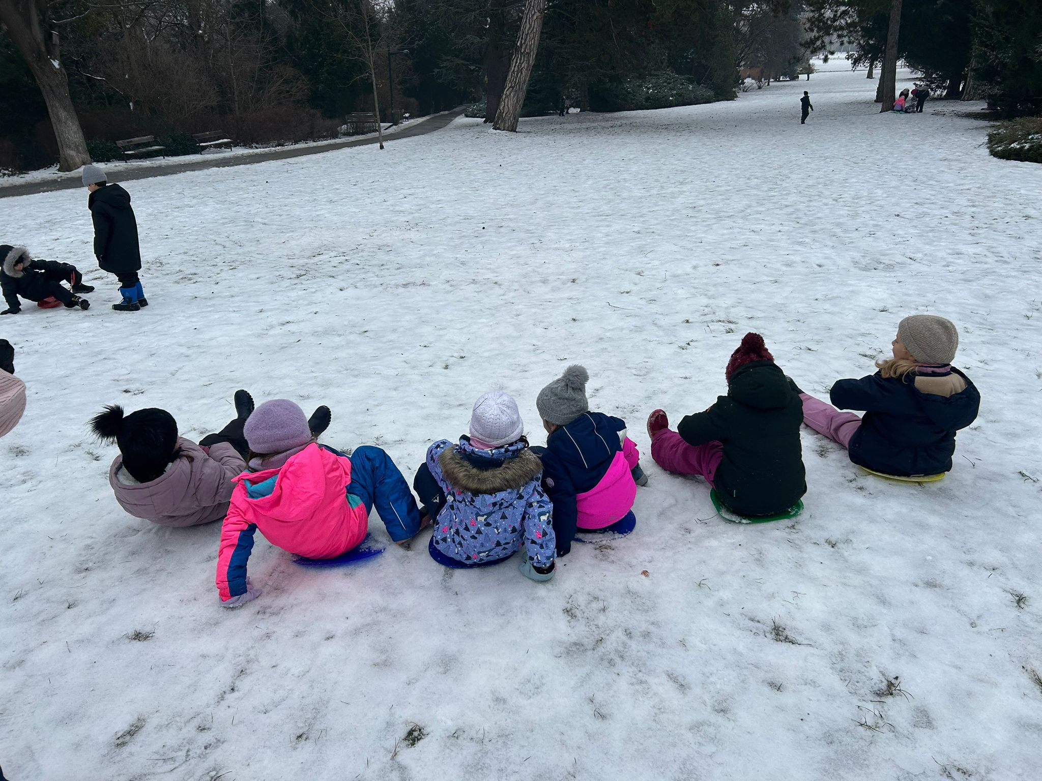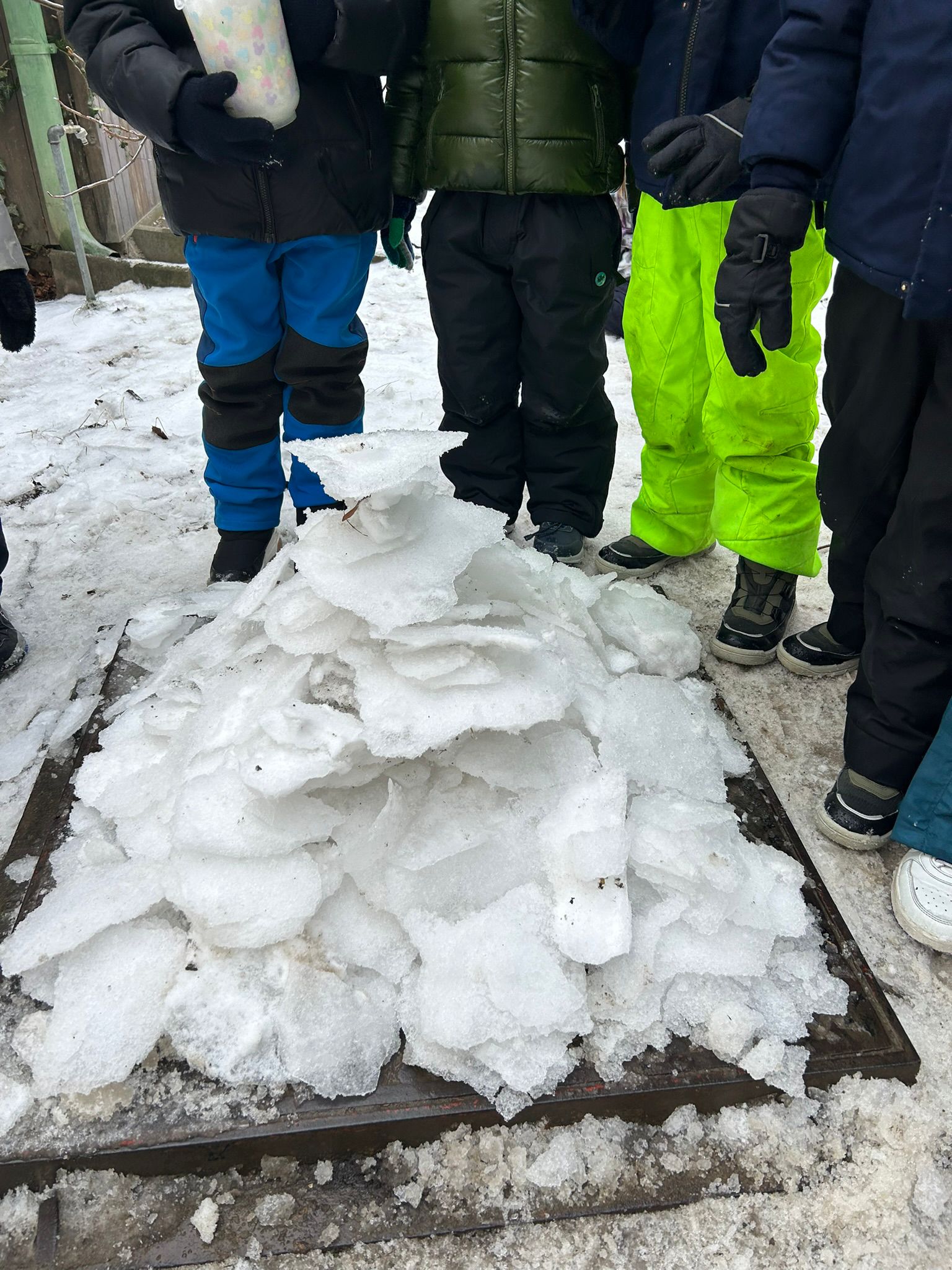 Die verschiedenen Aggregatzustände des Wassers in der Form von Schnee und Eis führte unsere 1A zu interessanten Beobachtungen. Sie klärten die Frage: Was schmilzt rascher: ein gepresster Schneeball oder flockig-lockerer Schnee? Außerdem ergab ein Experiment, dass aus einem Liter Schnee genau 0,5 Liter Wasser entstehen. Im Park wurde auch ein Schneemann gebaut - wenn auch etwas anders als erwartet, da der Schnee nicht ganz geeignet war ... Es waren wundervolle, kalte Tage im Jänner!
