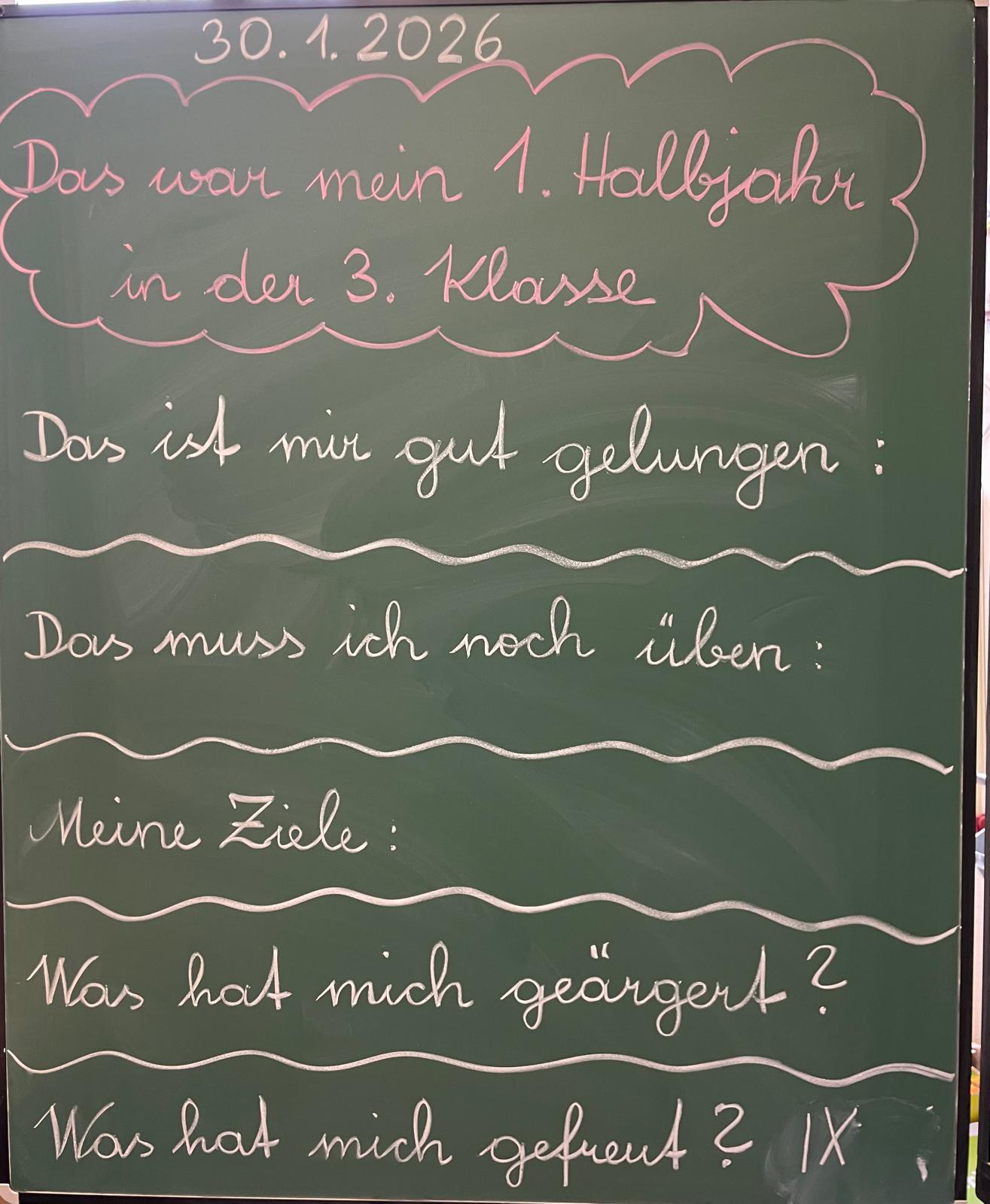 Die SchülerInnen reflektierten über dieses erste Semester (Fotos aus unserer 3A), wir feierten in der Kirche einen Gottesdienst zum Dank für die ersten Schulmonate und zum Segen für die Semesterferien und schließlich erhielten alle SchülerInnen ihre Schulnachricht - für unsere 1. Klassen das erste Zeugnis. Ein ganz schön aufregender Tag!