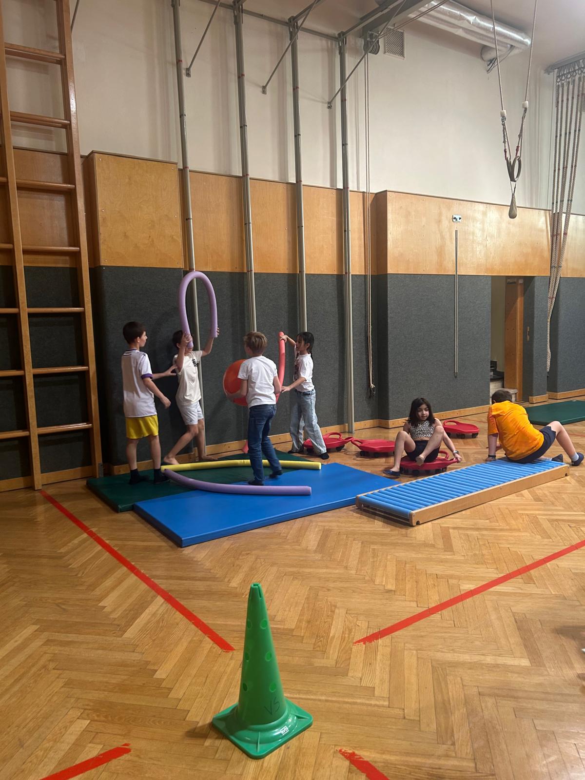 3B: Stationenbetrieb im Turnsaal: Wieder durften die Kinder ihre eigenen Stationen gestalten – und einmal mehr haben sie gezeigt, wie unglaublich einfallsreich sie sind! So wird der Sportunterricht besonders abwechslungsreich. Die Kinder lieben es, selbst planen und ihre Ideen umsetzen zu dürfen.