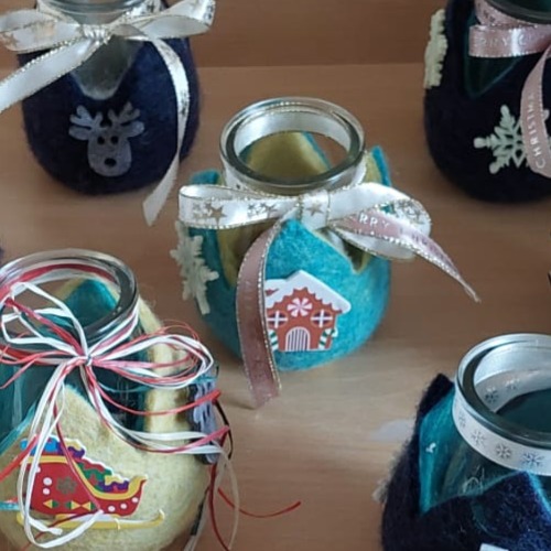 Im textilen Werkunterricht wurde in den 4. Klassen die Nassfilztechnik entdeckt - und gestickt und genäht!
